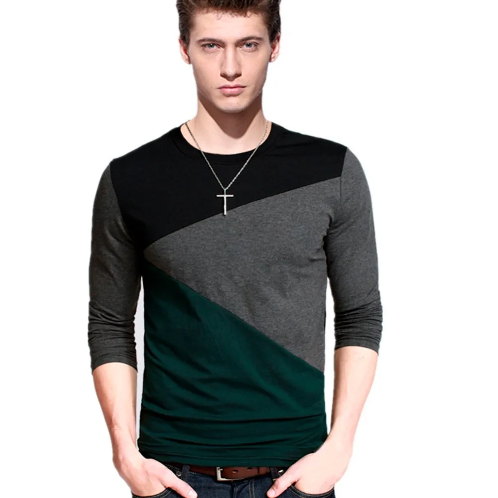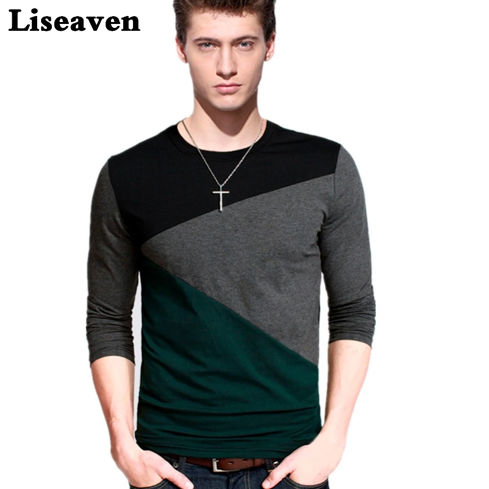 Мужская футболка с длинным рукавом Liseaven, облегающая хлопковая футболка с длинным рукавом в стиле пэчворк