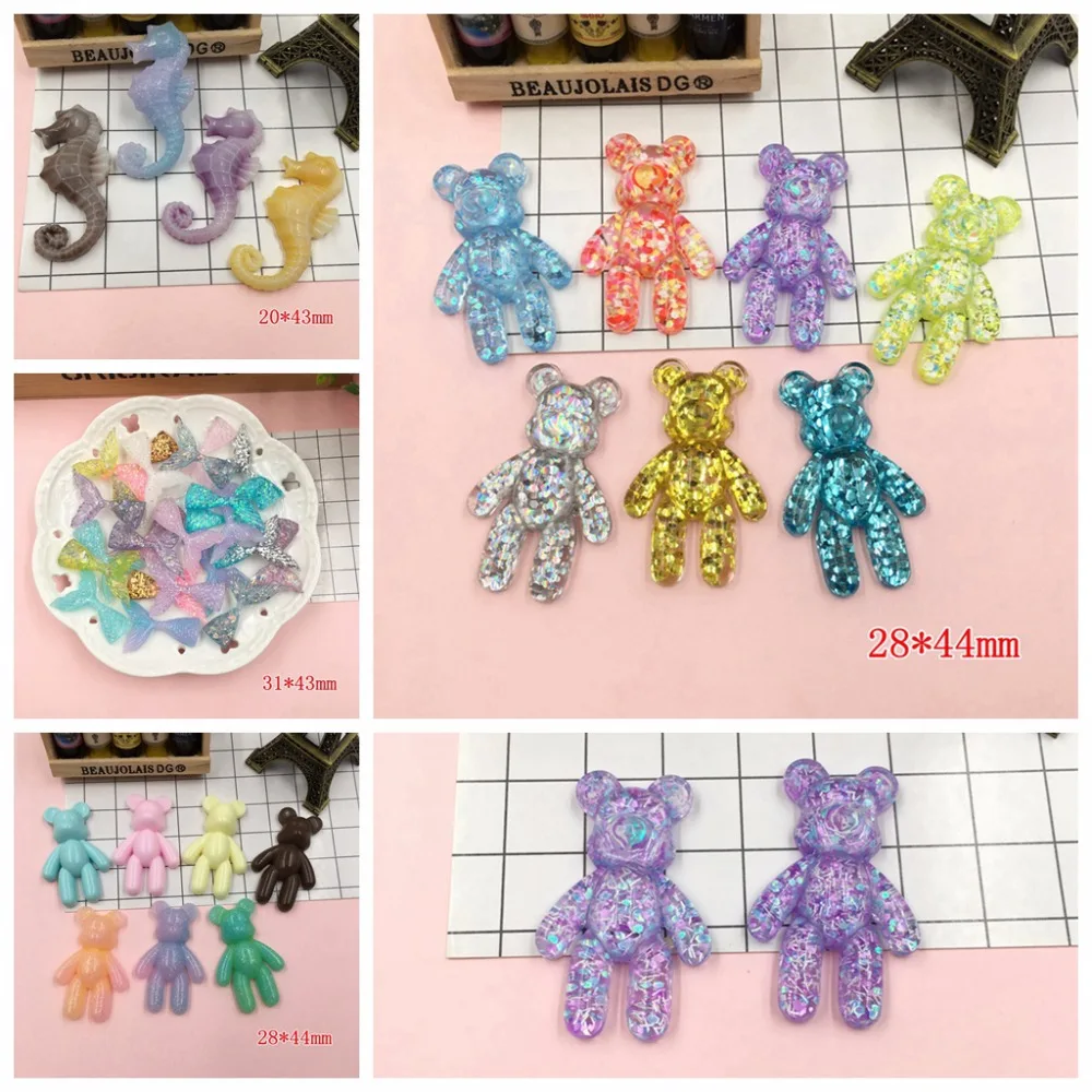 10 шт. кавайная резиновая горячая Распродажа морская лошадь, милый хвост, блестящий медведь для ювелирных аксессуаров, центра банта для волос, сделай сам