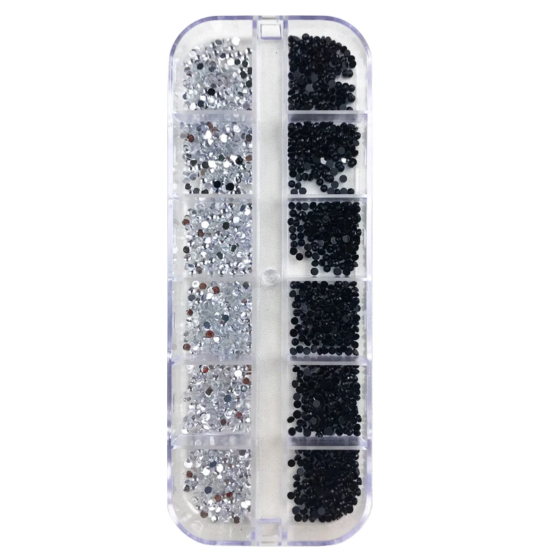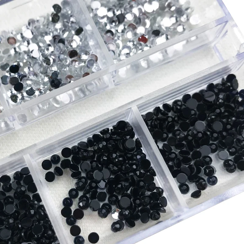 3000 шт. Стразы для ногтей 2 мм черные прозрачные белые круглые кристаллы AB Flatback блестящие украшения для ногтей в коробке