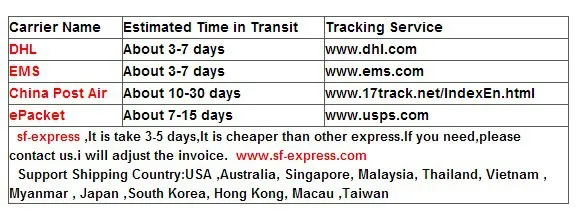 Внимание, пожалуйста! Мы являемся международным продавцом из Китая. Пожалуйста, будьте терпеливы! Обычно мы предлагаем отправку авиапочтой стандартным международным отправлением. Доставка может занять от 10 до 30 рабочих дней. Если у вас возникнут вопросы или какие-либо пожелания, пожалуйста, свяжитесь с нами. Мы ответим в течение 24 часов из-за разницы во времени между нами, спасибо за ваше