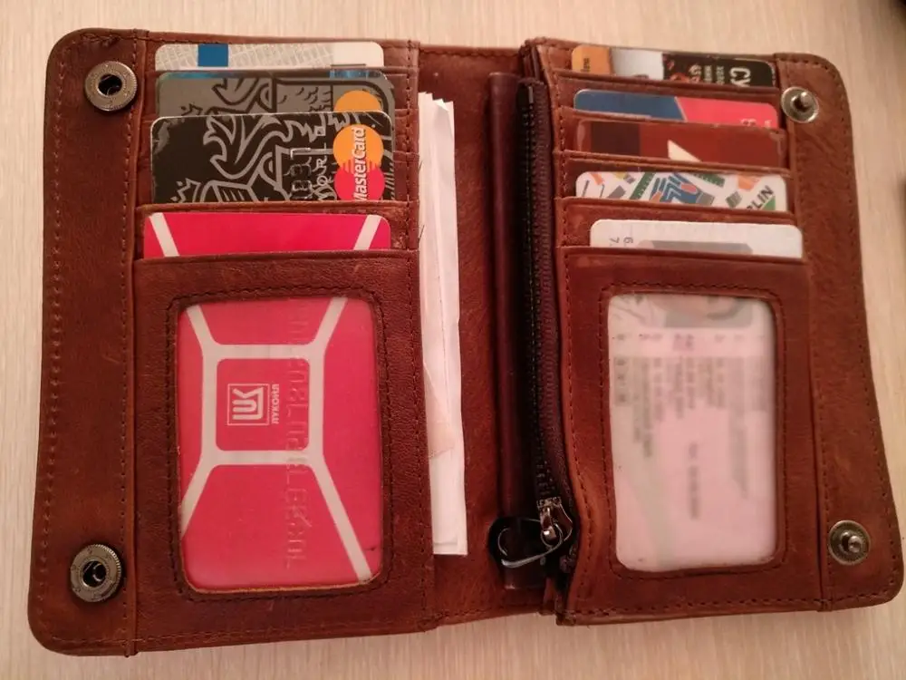 В целом норм, но меньше чем можно было ожидать исходя из заявленых размеров. Второй документ формата паспорта в противоположной стороне не помещаются, мешают заклёпки. Кроме того, при полной загрузке карточек бумажник в застёгнутом виде "раскрывает рот", что портит внешний вид(за это минус 1 звезду). Учитывая в/у, если не нужно носить второй документ и не много карточек - вполне можно покупать