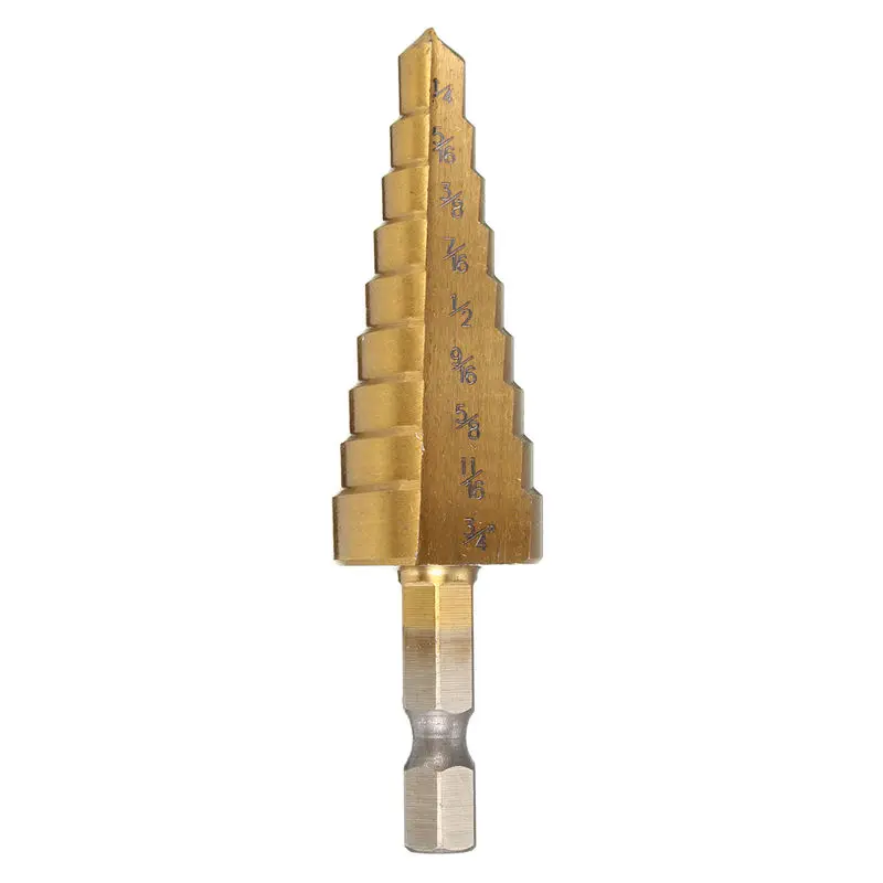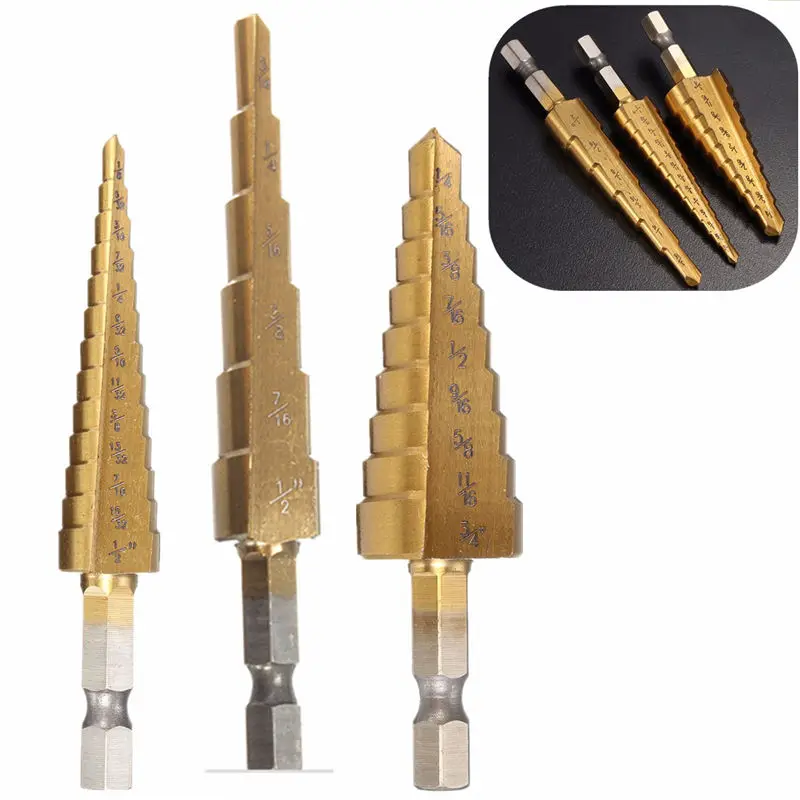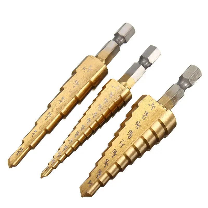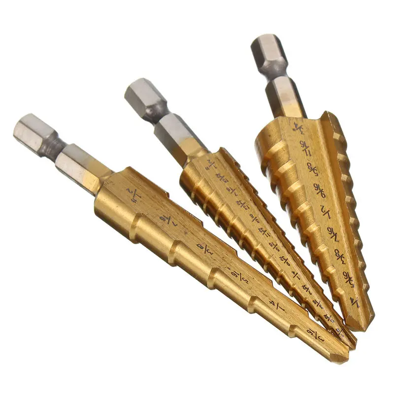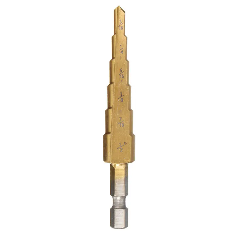 Особенности:1.100% Новые Фирменные и высокого качества.2. Уникальная конструкция лестницы, 1/4 "шестигранный хвостовик. Прямые канавки.3. Автоматически удаляет отверстия по мере сверления. Двухканальная конструкция делает более быструю и плавную резку.4. Покрытие нитрида титана для более прохладной работы, может эффективно продлить срок службы сверла.5. Подходит для плиты из углеродистой стали, листового железа, изоляционных досок, дерева. Не может использоваться для нержавеющей стали.6. Отличный помощник для плотника.7. Подходит для различных спецификаций.8. Делает wel в фаске, удаление чипов, archimedean drill, trepanning.9. Используется в заготовке, твердость которой составляет менее 25.Спецификация:1. Материал: HSS 42412. Хвостовик: 1/4 "шестигранный хвостовик и 3/8" Круглый хвостовик3. Обработка поверхности: титан4. Инструменты: пистолет дрель, скамейка дрель.3/16-1/2 '':3/16 ''(4,76 мм), 1/4'' (6,35 мм), 5/16 ''(7,94 мм), 3/8'' (10,35 мм), 7/16 ''(11,11 мм), 1/2'' (12,7 мм)1/4-3/4 '':1/4 ''(6,35 мм) 5/16'' (7,94 мм), 3/8 ''(10,35 мм), 7/16'' (11,11 мм),1/2 ''(12,7 мм),9/16'' (14,28 мм), 5/8 ''(15,88 мм), 11/16'' (17,46 мм), 3/4 ''(19,05 мм)1/8-1/2 '':1/8 ''(3,18 мм), 5/32'' (3,97 мм), 3/16 ''(4,76 мм), 7/32'', (5,56 мм),1/4 ''(6,35 мм),9/32'' (7,14 мм), 5/16 ''(7,94 мм), 11/32'' (8,73 мм), 3/8 ''(9,53 мм),13/32'' (10,32 мм),7/16 ''(11,11 мм),15/32'' (11,91 мм),1/2 ''(12,7 мм)Посылка включает в себя:1 набор сверл (3 шт.)