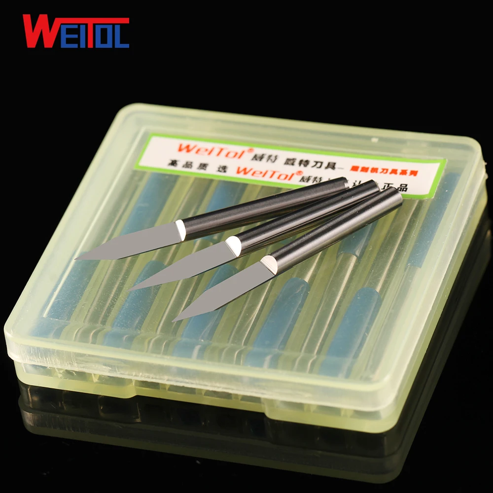 Weitol Бесплатная доставка N 10 шт.лот 3,175 мм гравировальные биты с плоским дном PCB карбидный резак для резьбы V режущий нож ЧПУ фрезы