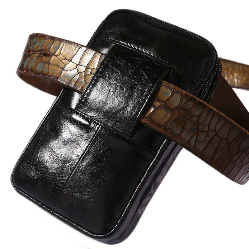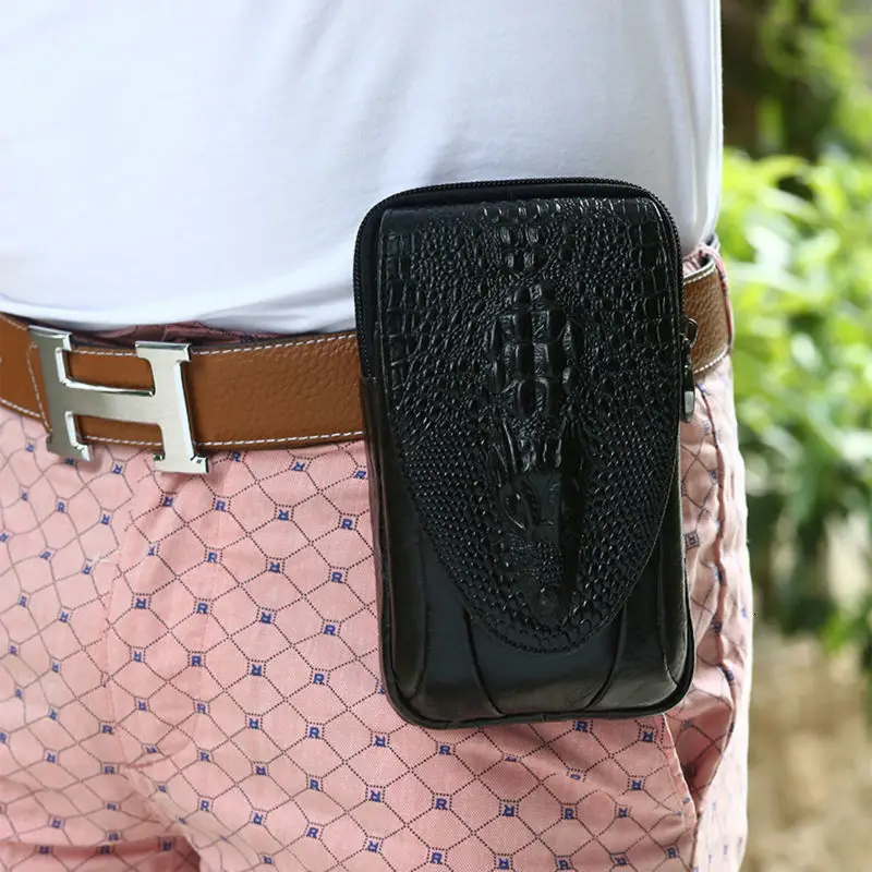 Мужской кожаный ремень с узором под крокодиловую кожу, винтажный поясной кошелек из кожух, чехол для мобильного телефона кожи на бедро