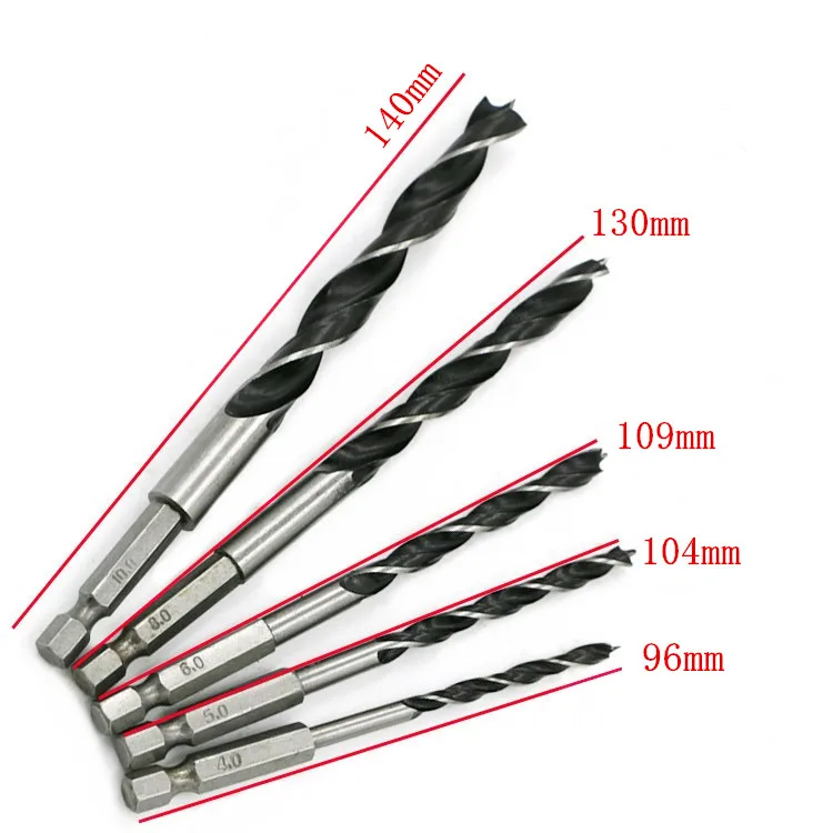 Сверло с шестигранным хвостовиком, 5 шт., 6,35 мм, 14 дюйма, 4 мм, 6 мм, 8 мм, 10 мм