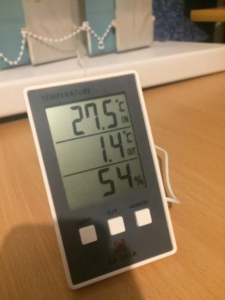Доставили быстро. Работает хорошо, информацию показывает точно. Один минус - когда стоит на подоконнике против света невозможно различить значения на циферблате.
