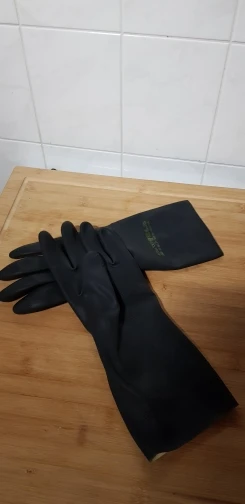 Превосходные черные резиновые перчатки, очень мягкие, очень толстые и устойчивые, я рекомендую их для посуды или дома. Они идеально подходят для домашней работы. Размер указан на упаковке и перчатках 9, но на самом деле они разрезаны 8. Я ношу 7,5 обычных домашних перчаток во Франции, и они очень хорошие, я могу их легко снять. Я рекомендую их, это настоящие перчатки бренда Ansell Alphatec. Продавец серьезен, я рекомендую его вам. С другой стороны, не спешите, отсчитывайте 3 недели, чтобы получить их.
