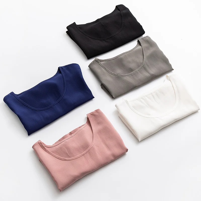 SuyaDream, 100% шелк, креп, для женщин, с круглым вырезом, без рукавов, Однотонная рубашка, лето 2021, серый, черный, розовый, винный