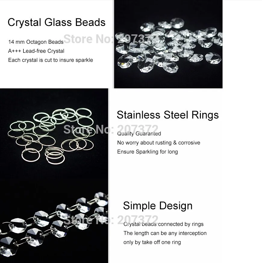 Стекло 14 мм Восьмигранные кристаллы пряди для Бисер для Diy штор украшения