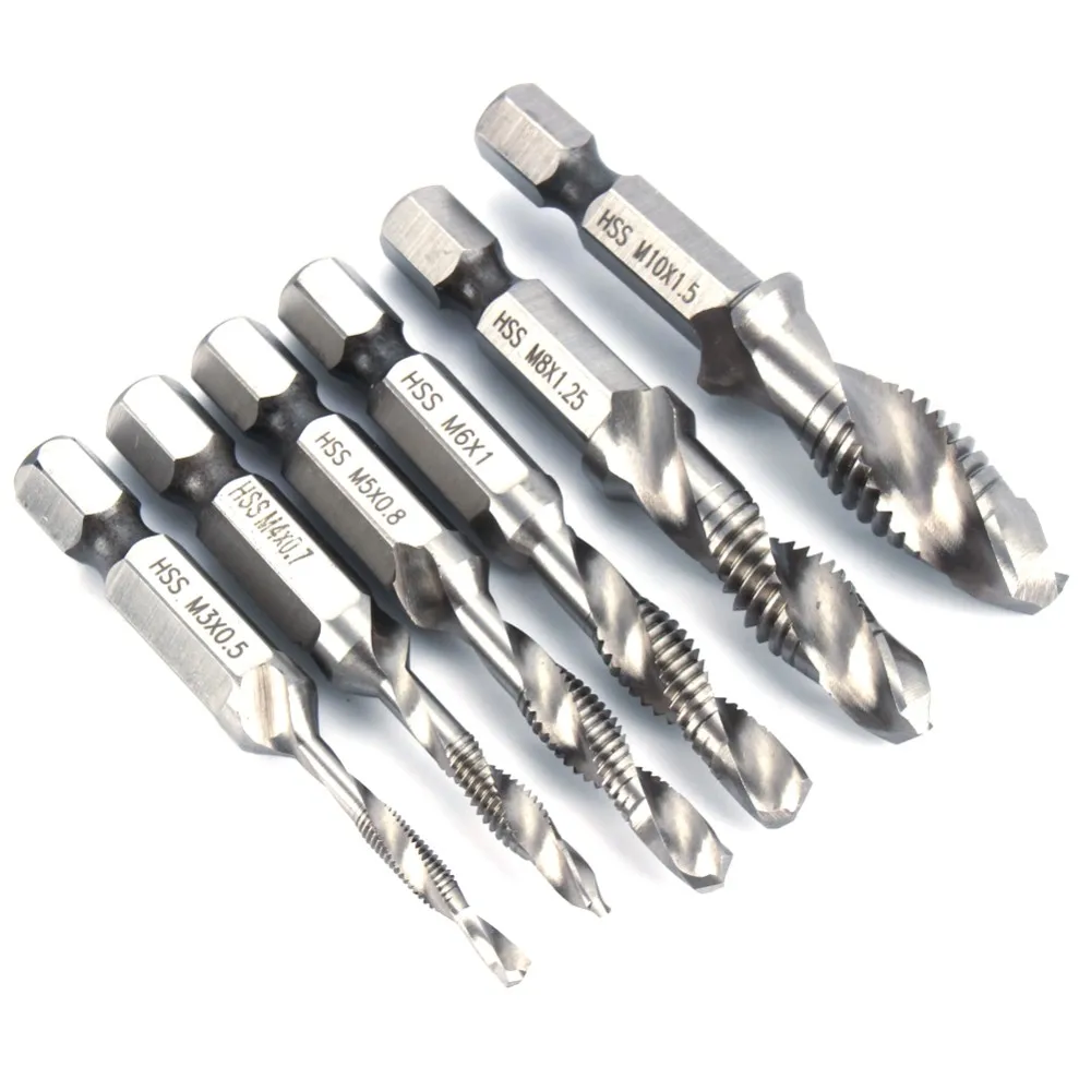 6 шт M3-M10 Метчик сверла Hss краны зенковки Deburr комплект метрических Комбинации разрядные высокого Скорость Сталь 14 в быстросменный шестигранный