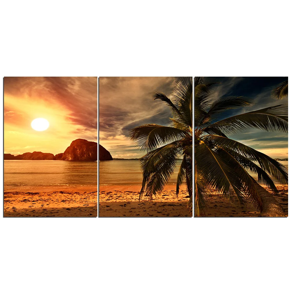 HD печатный 3 шт. закат пляж кокосовые деревья модульные фотообои для домашнего декора плакаты и принты бесплатная доставка