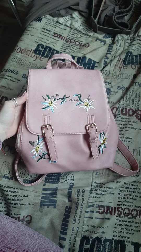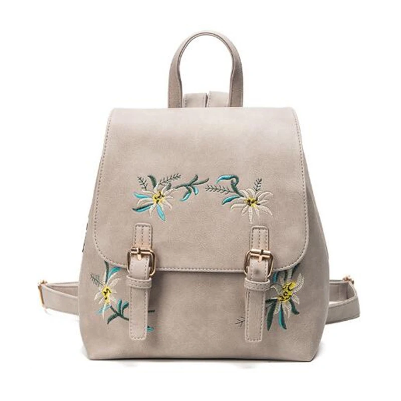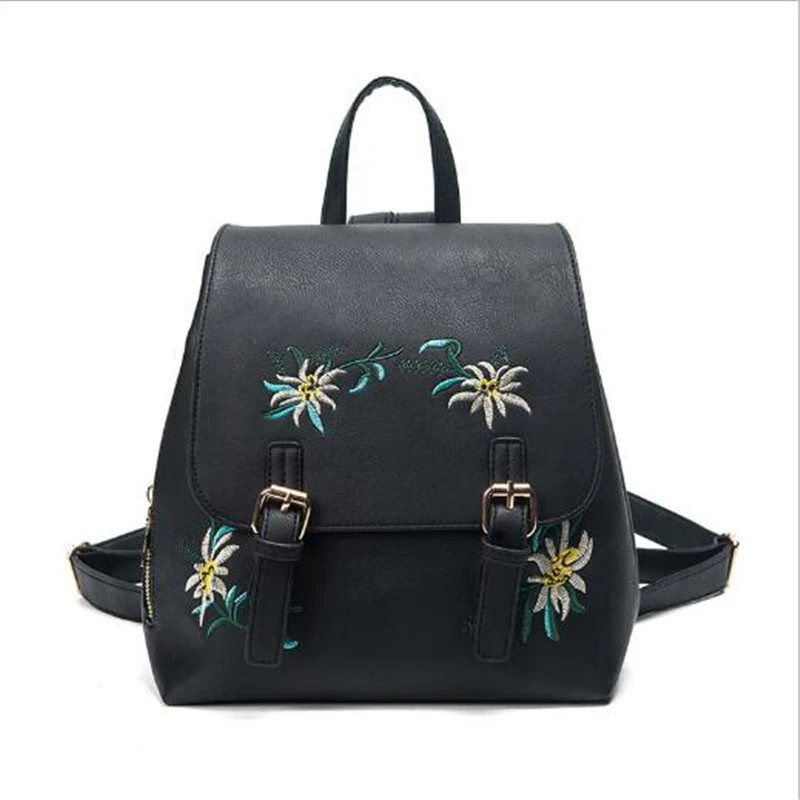 DIDA BEAR Качества Бренда Женщины Кожаные Рюкзаки Женщины Школьные сумки для Девочек Рюкзак Малый Вышивка Bagpack Rucksack Вышивание рюкзак Цветочный узор Мода Школа рюкзак Черный Хаки Серый Розовый рюкзак женский