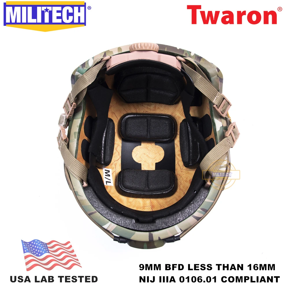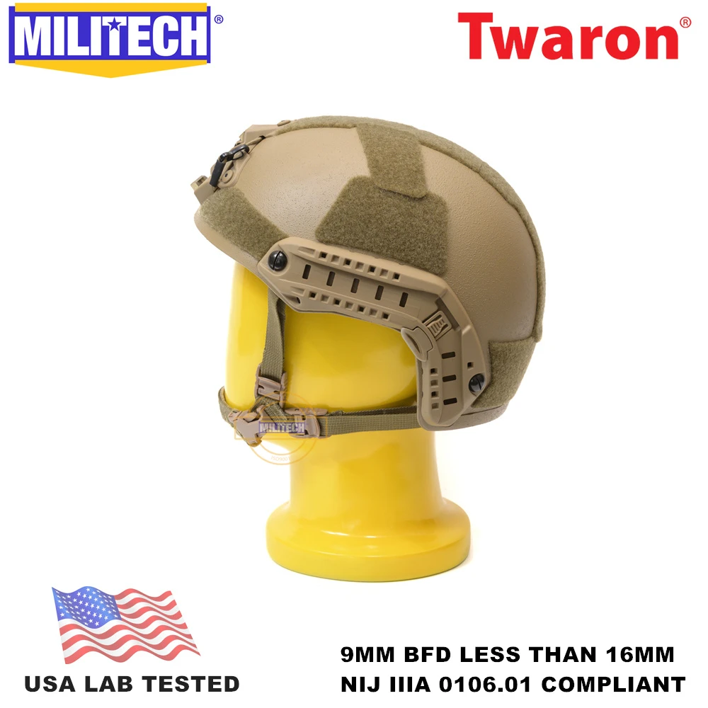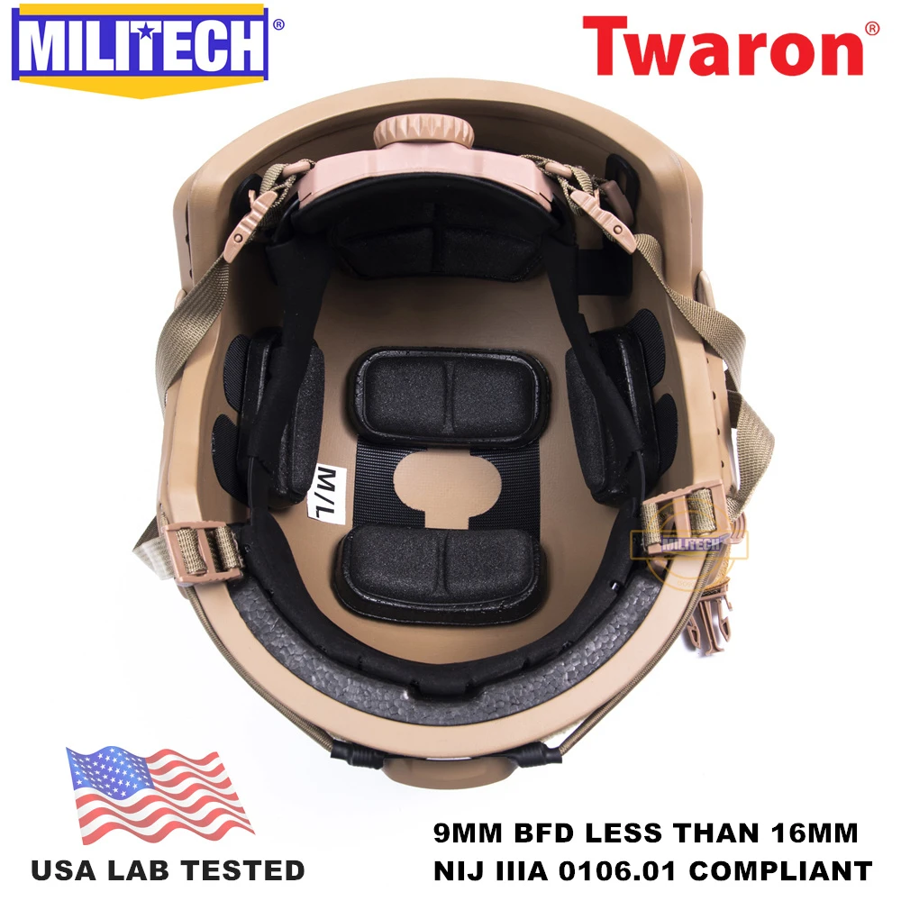 Противопуленепробиваемый шлем MILITECH NIJ Level IIIA 3A 0106,01, OCC циферблат, высокий вырез XP Cut, арамидный, пуленепробиваемый шлем