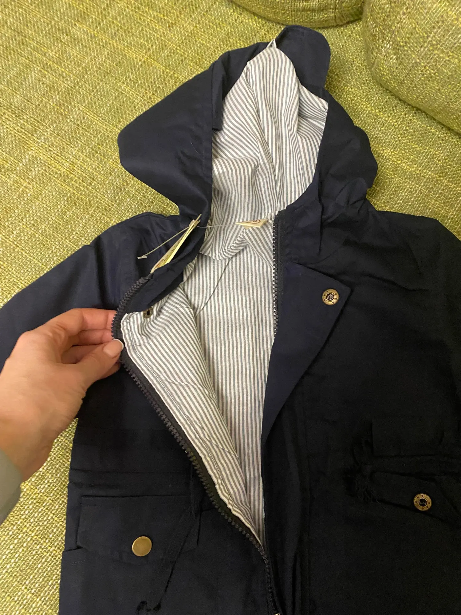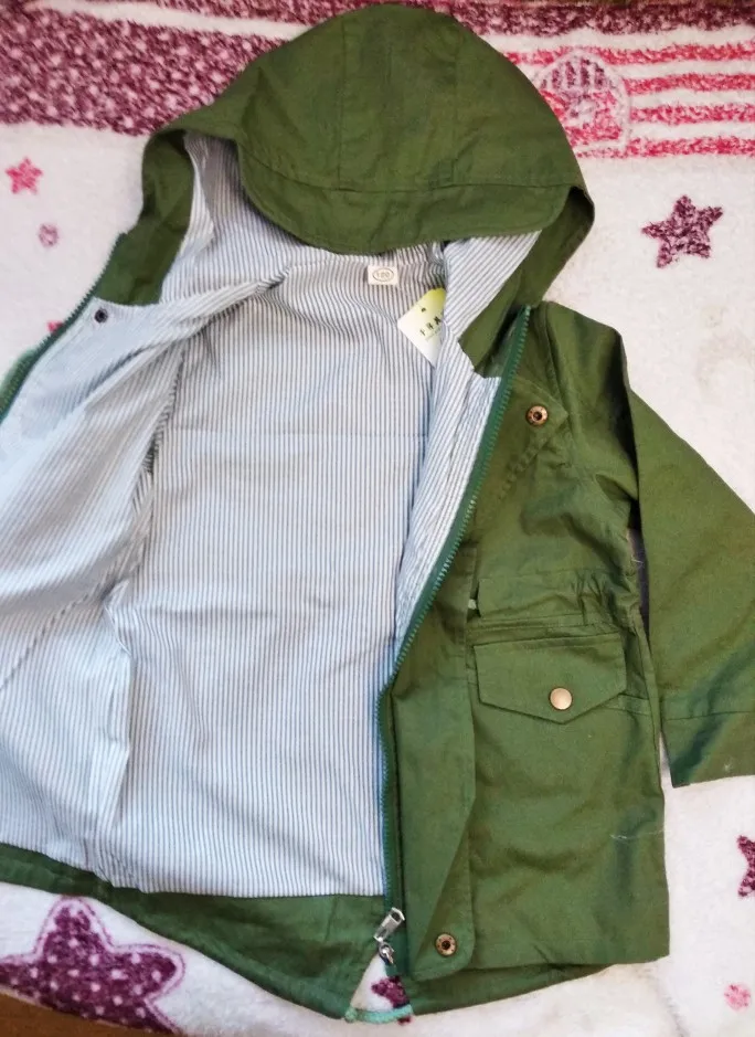 Хорошая курточка, тонкая , на теплую осень. Но рукава узковаты, когда подвернули манжеты с трудом рука проходит.Взяли в 1год розмер 2г на вырост, чуть великовата, но носить уже можно. Цвет приятный,лишнего ничего нет. Пришло все быстро, недели за 3.С продавцом не общалась.
