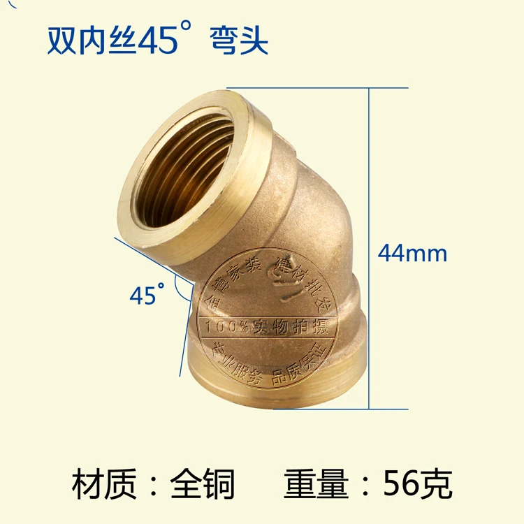 Внутренний колено Vidric из чистой меди, двойной Внутренний провод, Колено 45 градусов, внутренняя резьба с базовым соединителем водопроводной трубы 48 DN15