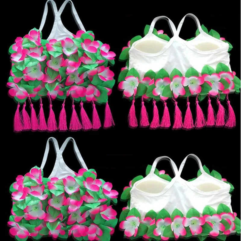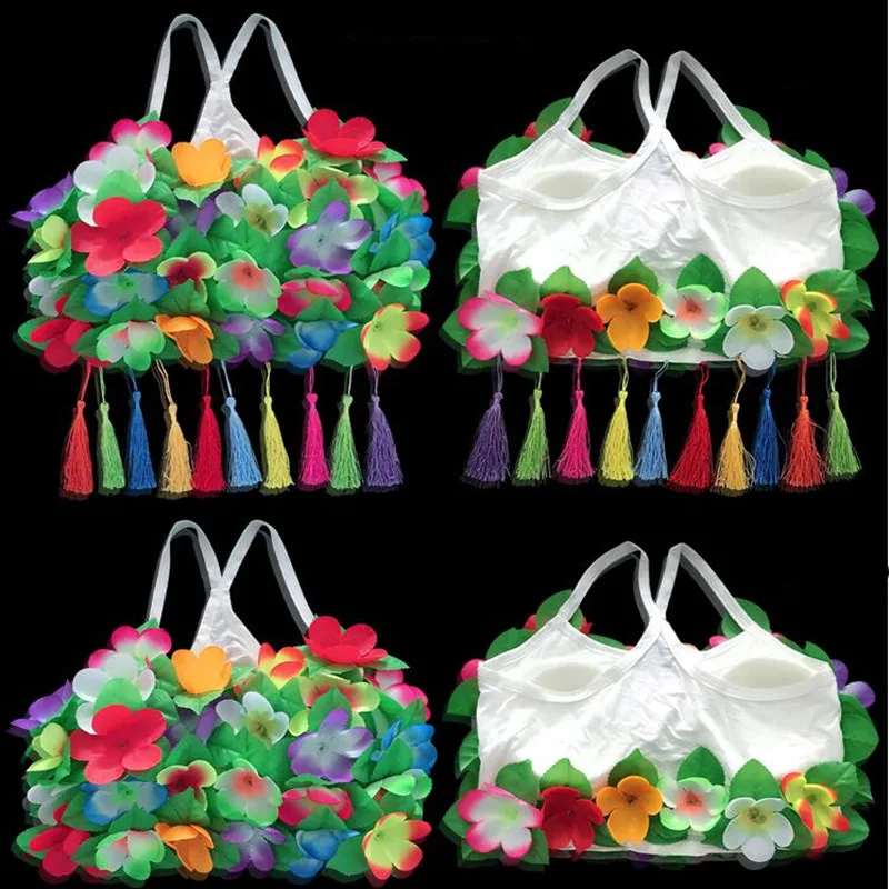 Гавайский Цветочный Бюстгальтер с подвеской с кисточками, Цветочные майки хула для вечерние ринки, свадьбы, дня рождения, Пасхи, Дня Святого Валентина, танцев, косплея, свадьбы