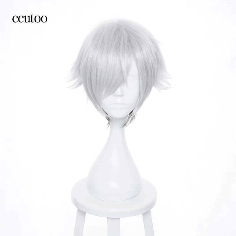 Ccutoo 12 "короткий пушистый многослойный парад смерти Decim мужской серебристо-серый смешанный синтетический волос Косплей парик Термостойкость