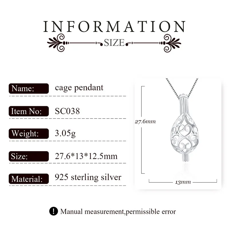 CLUCI Серебро 925 капли воды Винтаж Клетка подвеска для деловых женщин 925 пробы серебряные жемчужные медальон кулон SC038SB