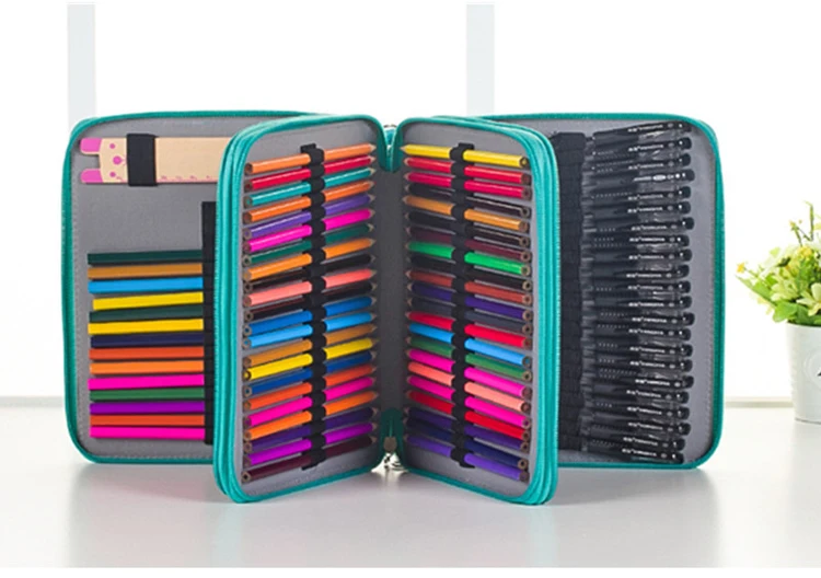 Чехол для карандашей 124, из искусственной кожи, цветные карандаши, акварель, 4 слоя