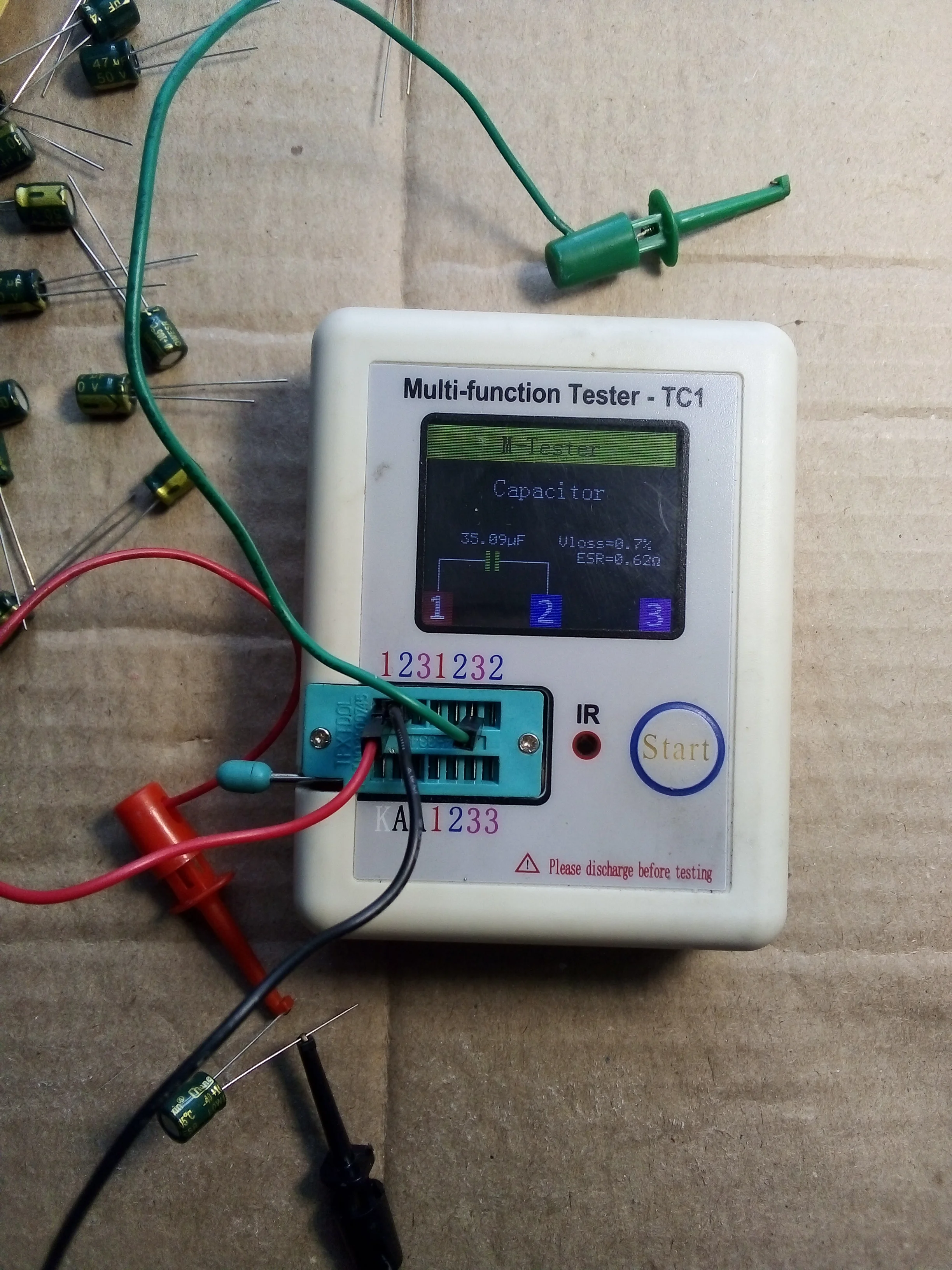 конденсаторы пришли 30 штук замерил емкость и esr на тестере из Китая ,результат меня не очень обрадовал на фото все видно емкость ни соответствует заявленной,замерял 20 штук результат в районе 35-36мкф ,вывод кондёры не очень качественные средний.