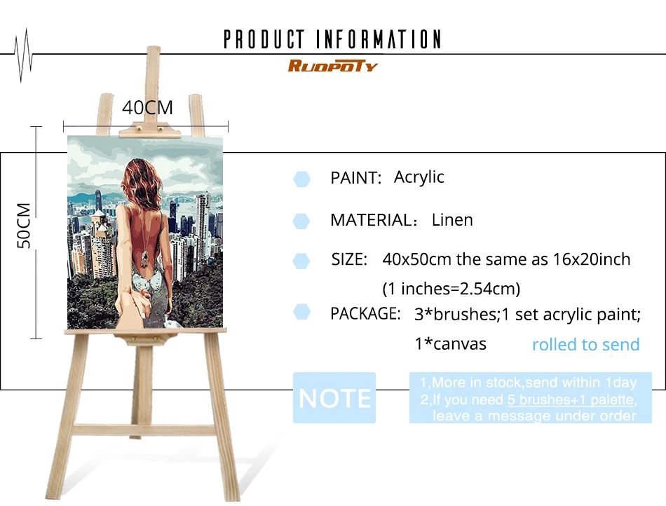 RUOPOTY рамка девушка у моря DIY Рисование по номерам Акриловая Кра...