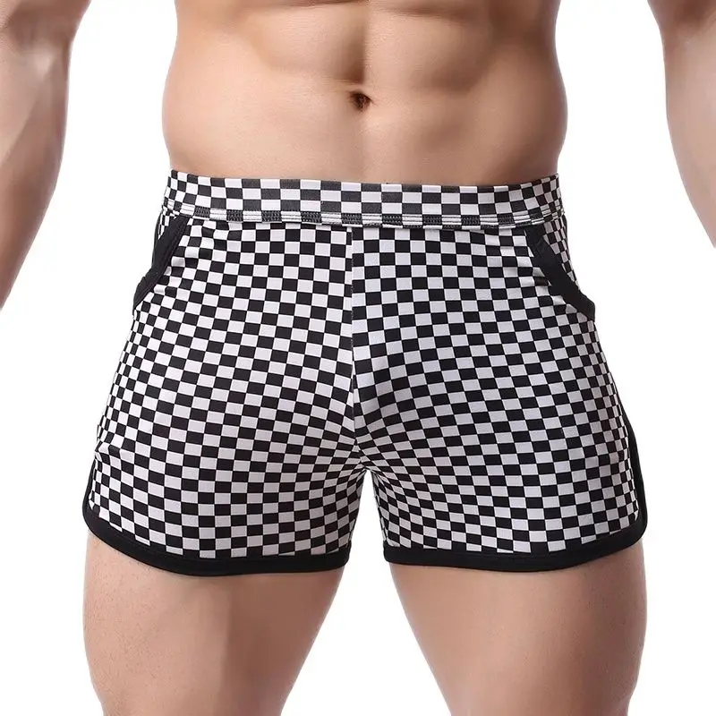 Мужские клетчатые шорты, повседневные шорты-боксеры для бодибилдинга, быстросохнущие спортивные штаны с карманом для тренировок