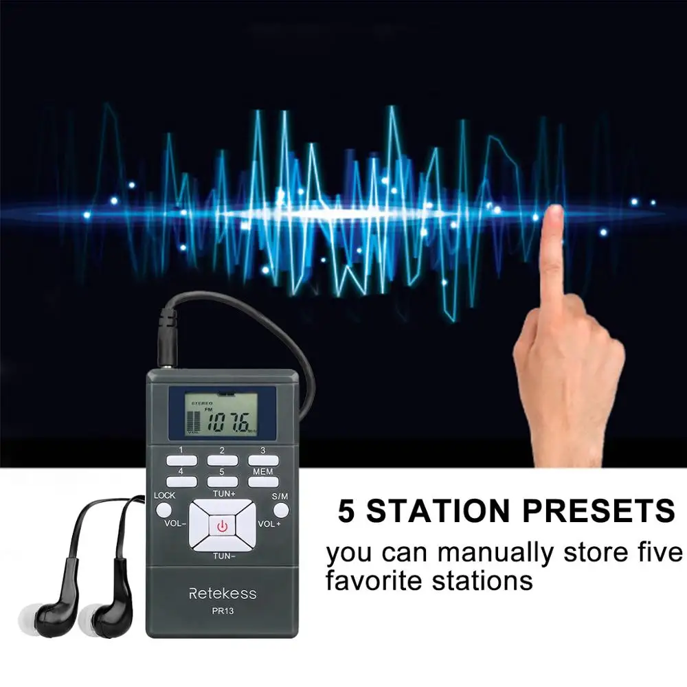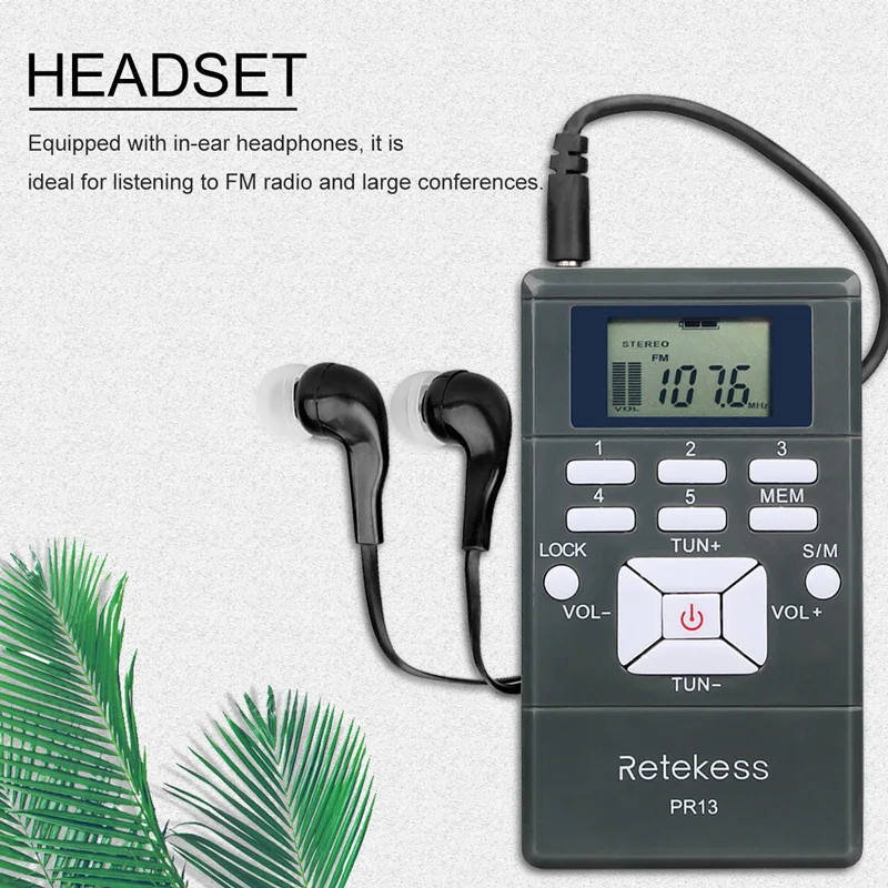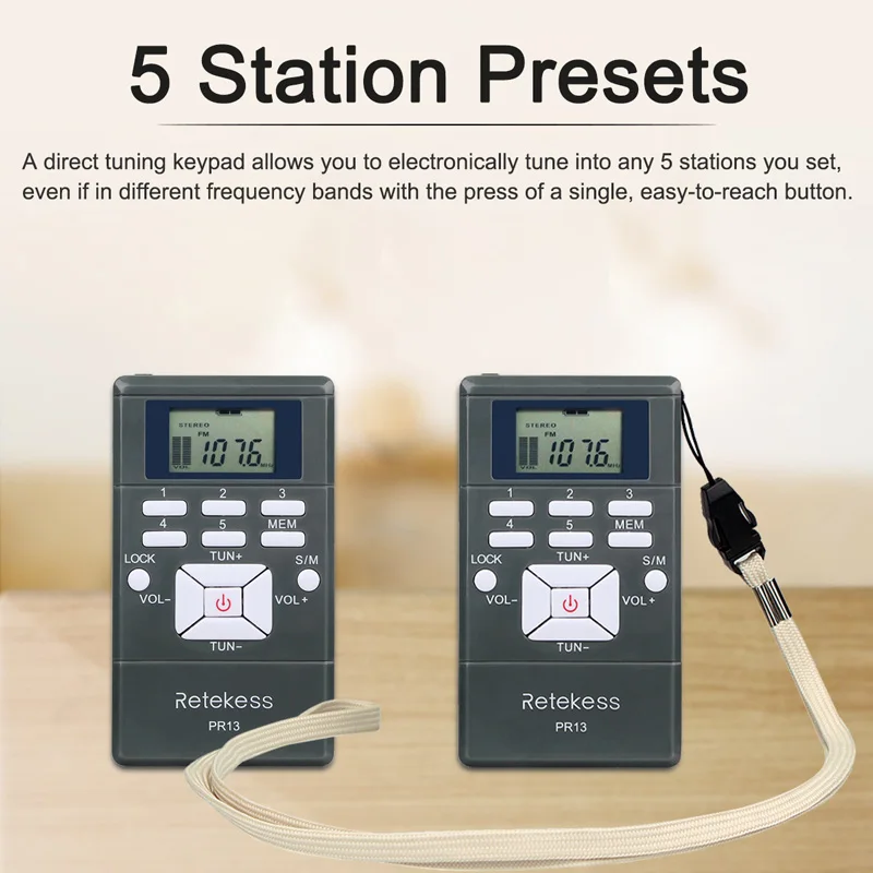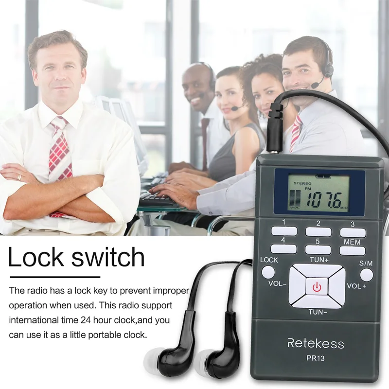 Радиоприемник RETEKESS PR13, портативное FM-радио DSP электронные мини-часы, для церкви, совещаний, музеев, путеводителей