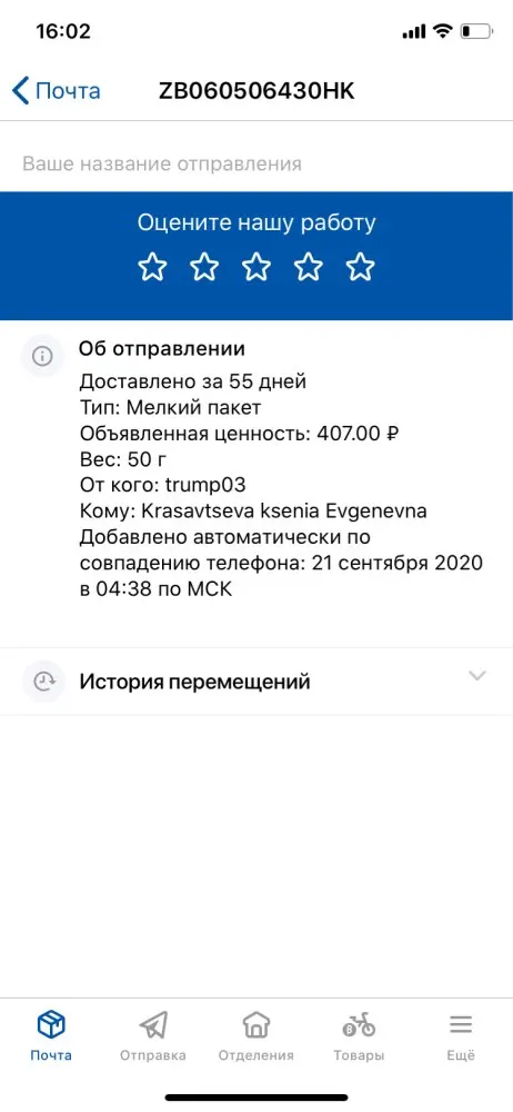 Страна: RU Доставка: Cainiao Saver Shipping For Special Goods 25.10.2020