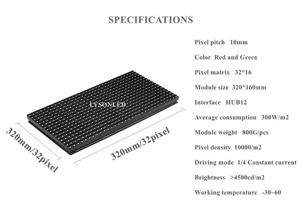 LYSONLED P10 R + G наружный SMD двухцветный дисплей модуль 320x160 мм, наружная электронная вывеска P10mm