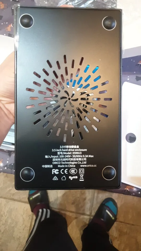 Recurring Orico customer here. I just love their stuff. The quality/price relationship is just great. The HDD case came in a nice cardboard box with sufficient documentation as usual. The power cord even had a plastic protector over the high voltage pins. Dropping the HDD in was easy and quick. Snug fit between two foam pads for the HDD. The system detected the disk immediately including UASP support. Test transfers look good. I like that it has an on/off button on the case and that the PSU is integrated in the case. Delivery was quick (15 days from Singapore to Switzerland). Thanks, Orico!