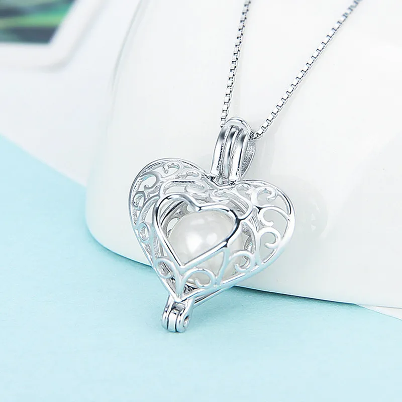 Серебряная коллекция 925 года, романтичная Женская клетка CLUCI, подвеска, ювелирные изделия, искусственное Серебряное сердце, жемчужный клетка, медальон SC105SB