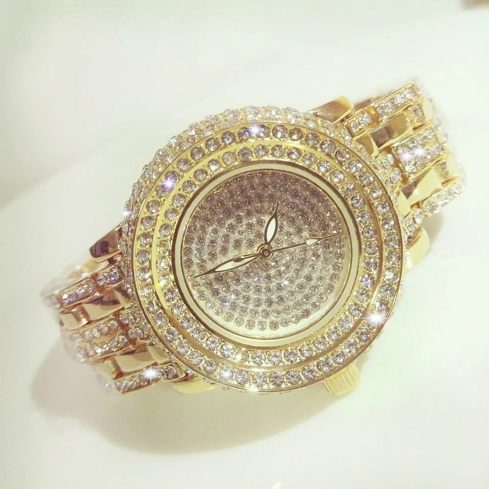 Часы наручные BS женские кварцевые, брендовые роскошные золотистые, с браслетом под платье, с бриллиантами, 2017