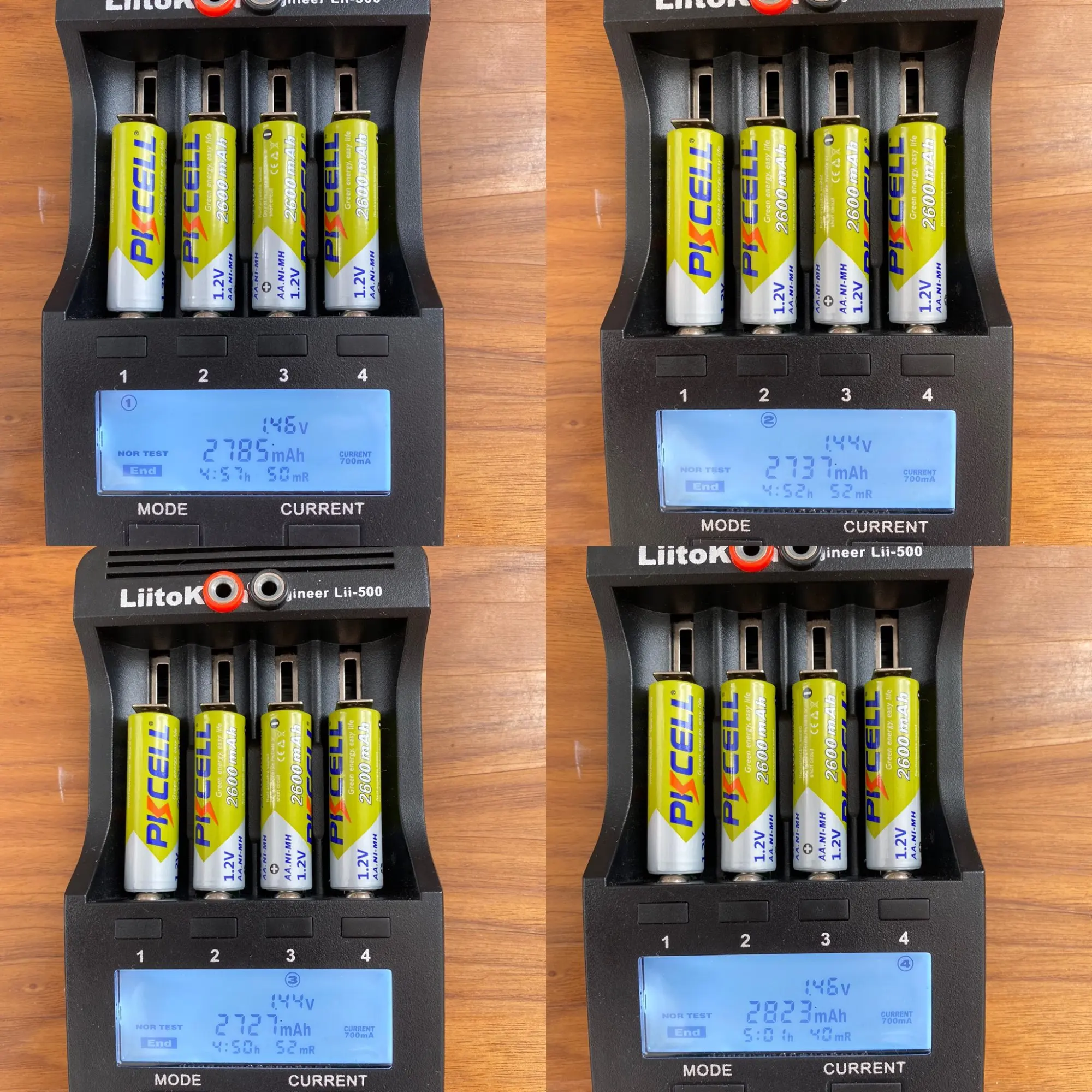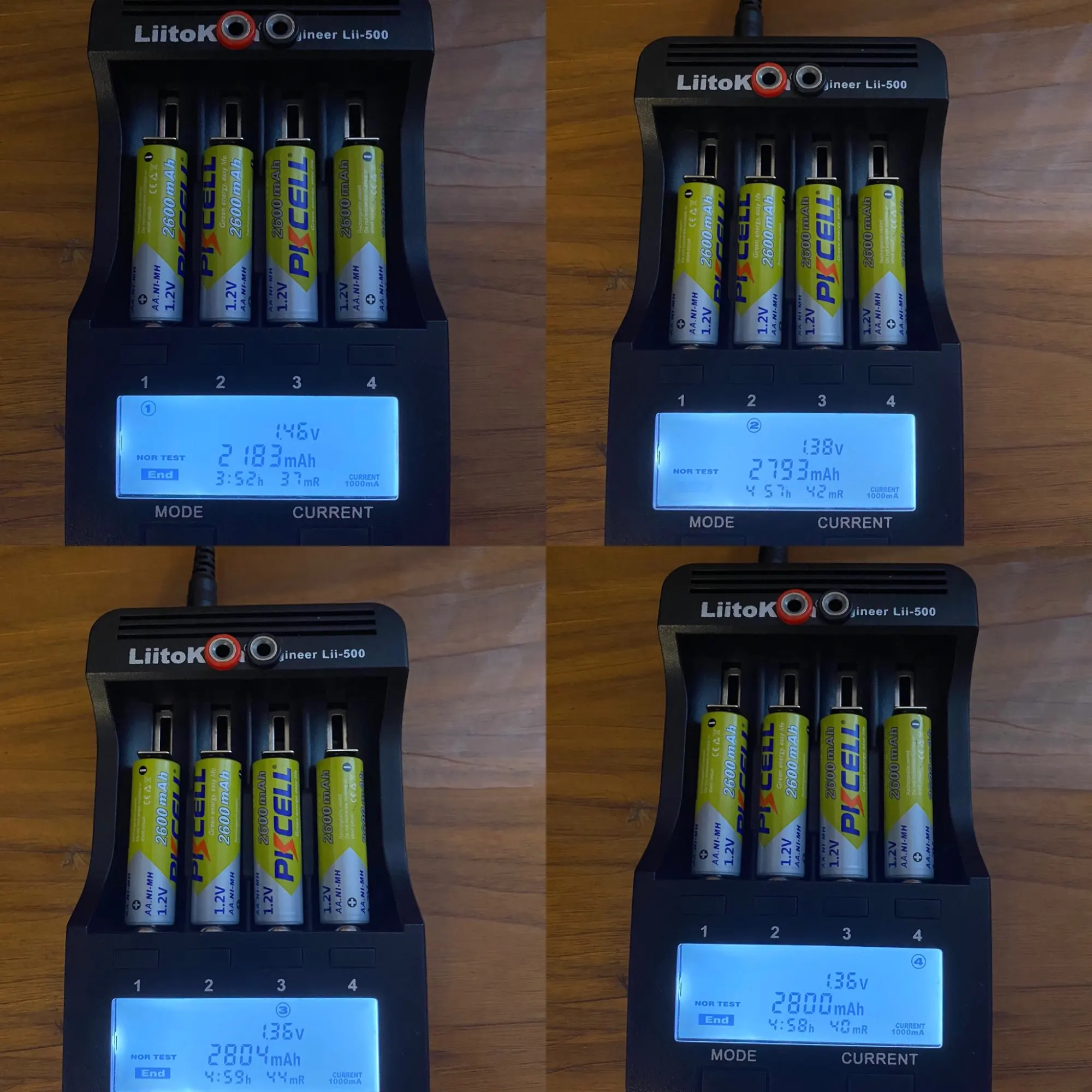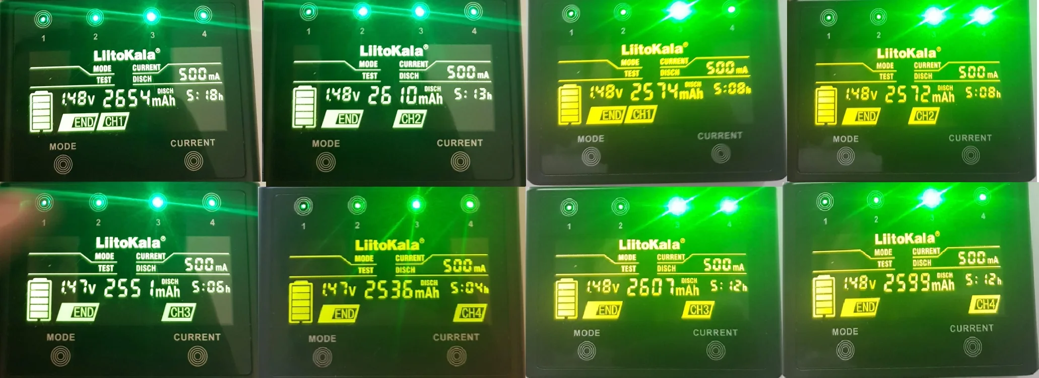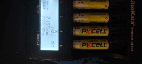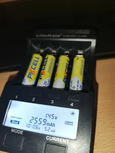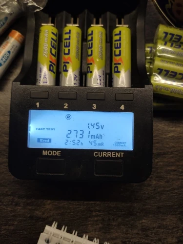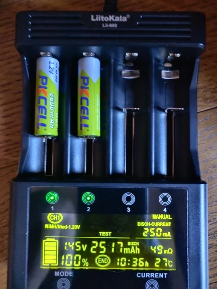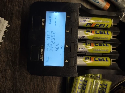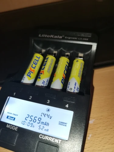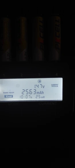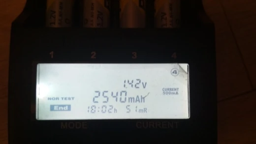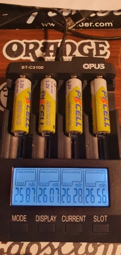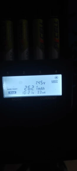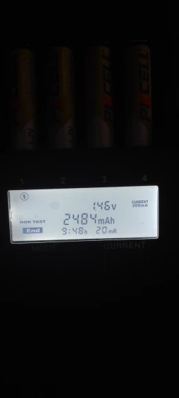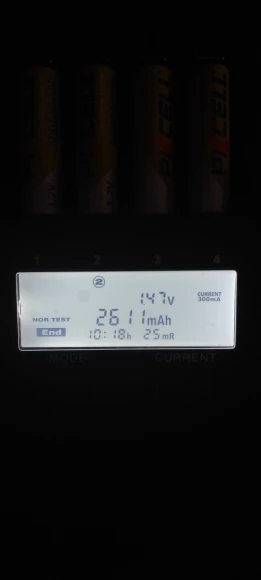Na čtyři baterie jsem použil program oživení, (třikrát nabíjí a třikrát vybíjí a při vybíjení měří mAh) a hodnoty jsou 2642, 2606, 2619, 2628mAh. Další čtyři baterie jsem jednou nabil a při vybijeni měřil a hodnoty jsou 2528, 2559, 2529, 2553mAh. Dlouho jsem neviděl tak dobré baterie za tak skvělou cenu. I used a recovery program for four batteries (charges three times and discharges three times and measures mAh when discharging) and the values are 2642, 2606, 2619, 2628mAh. I charged the other four batteries once and measured them when discharged, and the values are 2528, 2559, 2529, 2553mAh. For a long time I have not seen such good batteries for such a great price.