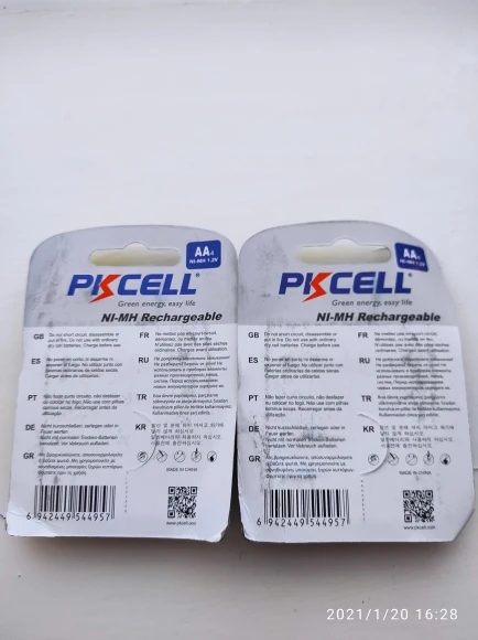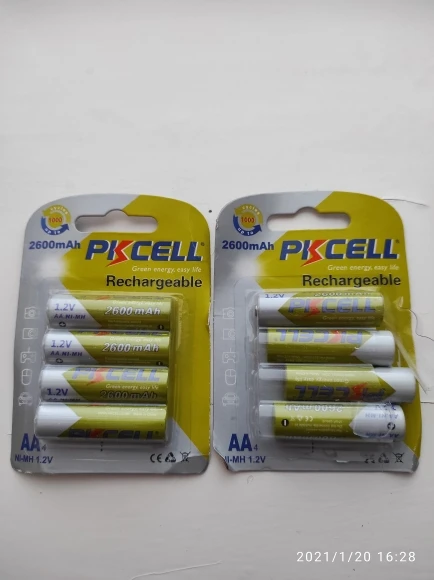 Отличные, мощные аккумуляторы. Проверил емкость на АА 2600 - фактически выше паспортной и составляет 2673-2749mah (см.фото). Очень качественно сделаны, правда даты изготовления нет. До этого покупал китайские Энелор, так на них емкость ни на одном не соответствовала паспортной, явная подделка под японские (действительно крутые) аккумуляторы. Очень доволен покупкой, Магазин отправил аккумуляторы в день заказа, молодцы! Буду еще заказывать только аккумуляторы PkCell. На мой взгляд самые лучшие аккумуляторы по цене-качеству на Алиэкспресс. Рекомендую!!!
