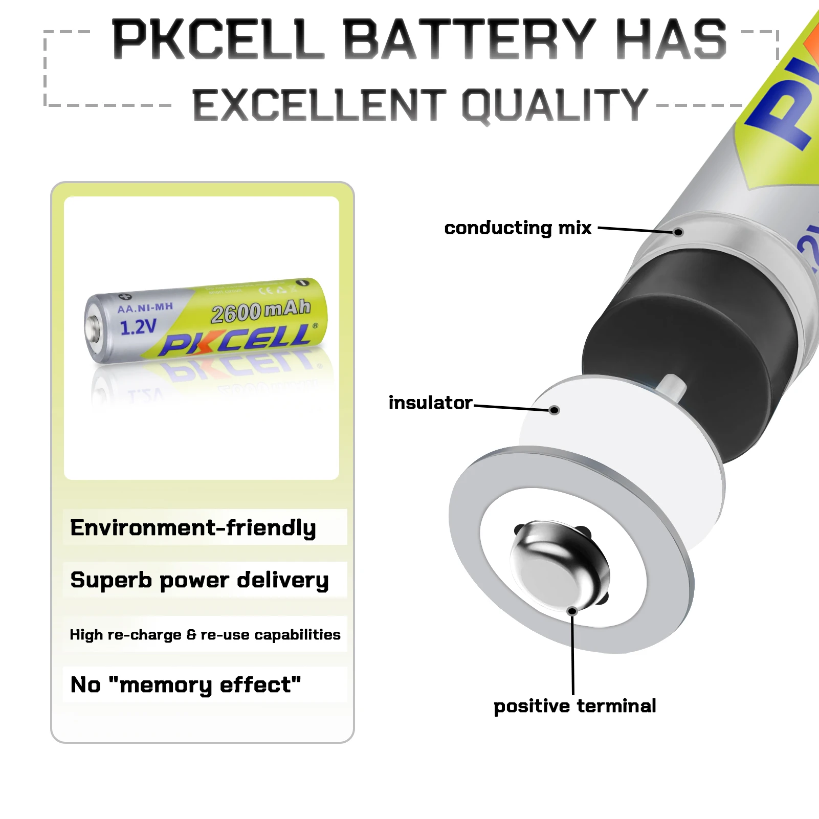 8 шт. батарейки PKCELL NIMH AA 2600 мАч 1,2 в 2A Ni-MH aa перезаряжаемые батареи AA батареи + 2 шт. коробка для хранения батареи