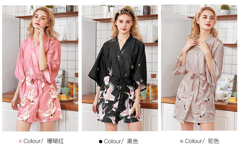 Халат-кимоно Женский Летний, из искусственного шёлка, размер M-XXL