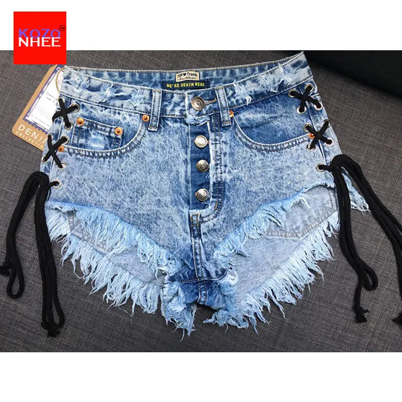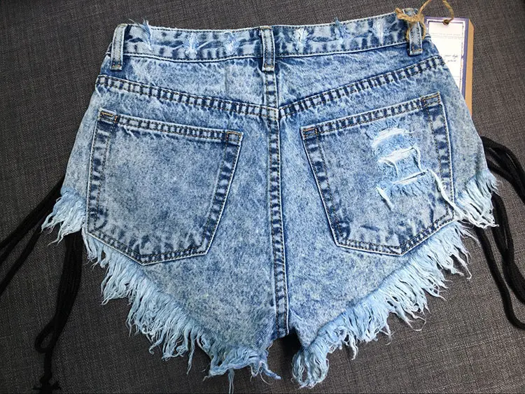Винтаж Снежинка неэластичен Для женщин Джинсовые шорты с высокой талией ремни кисточкой женские летние шорты для Для женщин джинсы