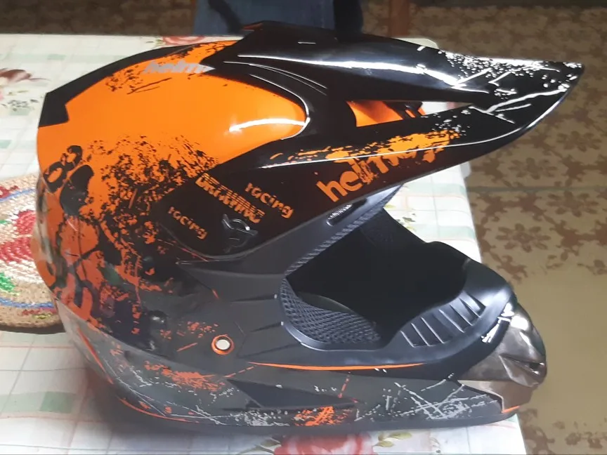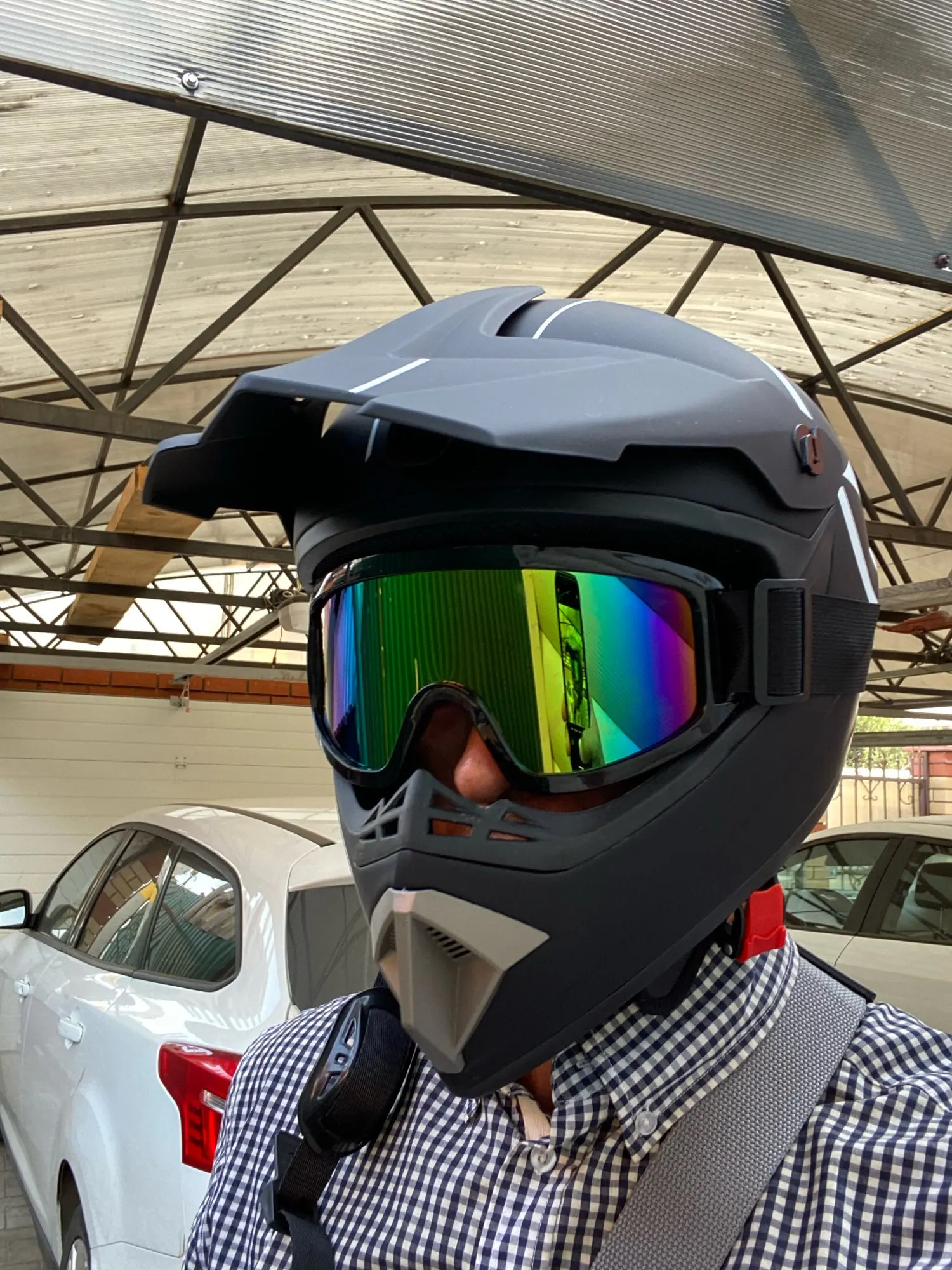 Шлем брал для моноколеса. Шлем жаркий, при 30 градусах особо не покатаешься. В остальном вполне сносный. Очки можно одевать на шлем вместо визора. А перчатки из комплекта без зашиты запястий, и даже без подушечек на ладони, для моноколеса не подойдут. Для мото или питбайка такие перчатки тоже не советовал бы.