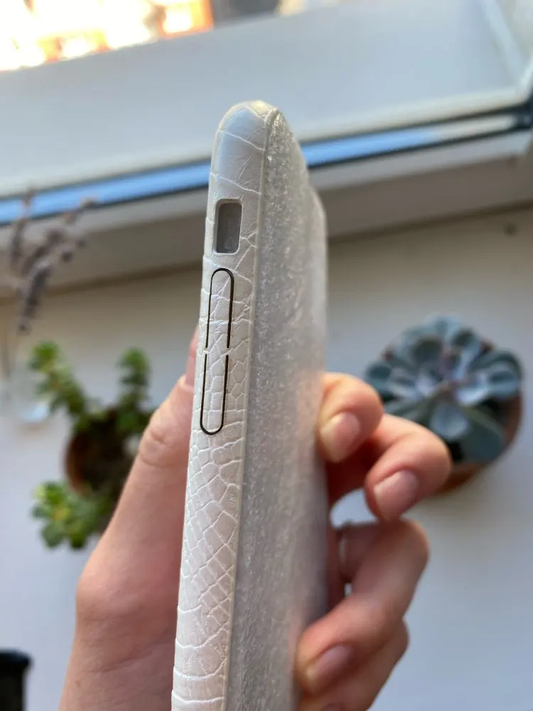 Классный чехол.Один минус пачкается быстро, но это не вина качества это особенность белого цвета.Смотрится круто, под кожу.Рекомендую.Заказываю уже второй )))