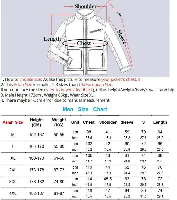1. Как вы, Что вы выбрали размер, соответствующий: Как на изображении для измеренияГрудь вашей куртки, S.