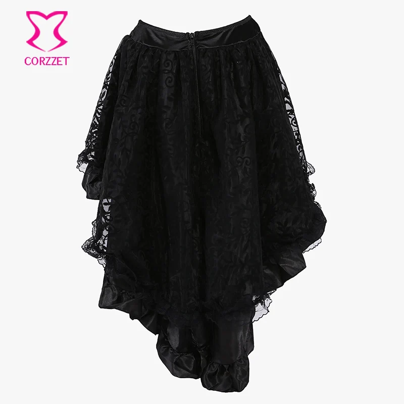 Женская плиссированная юбка в стиле стимпанк, готическая Черная длинная Асимметричная юбка из фатина и флока, спереди и сзади