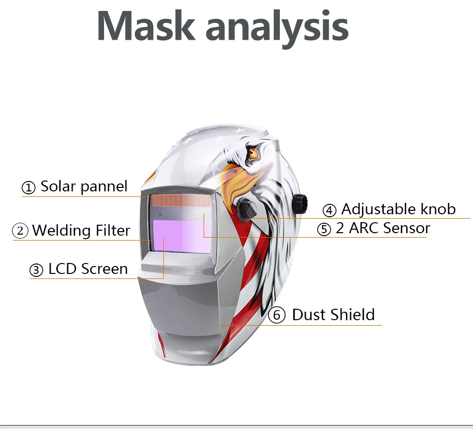 Электросварочная маскашлемыколпачок сварщика для сварочного аппарата с литиевой батареейсолнечной энергией с автоматическим затемнением TIG, MIG, MMA, MAG, KR, KC