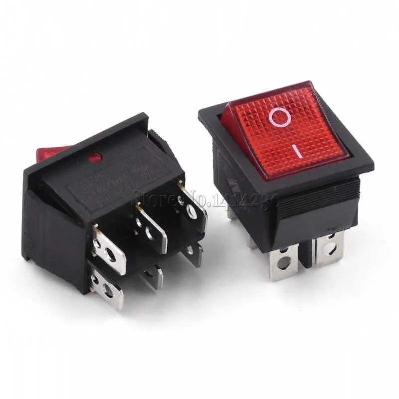 Переключатель KCD4 25x31 мм, красный, 6 контактов, 2 положения, 16 А, 250 В, 20 А, В переменного тока, 10 шт.