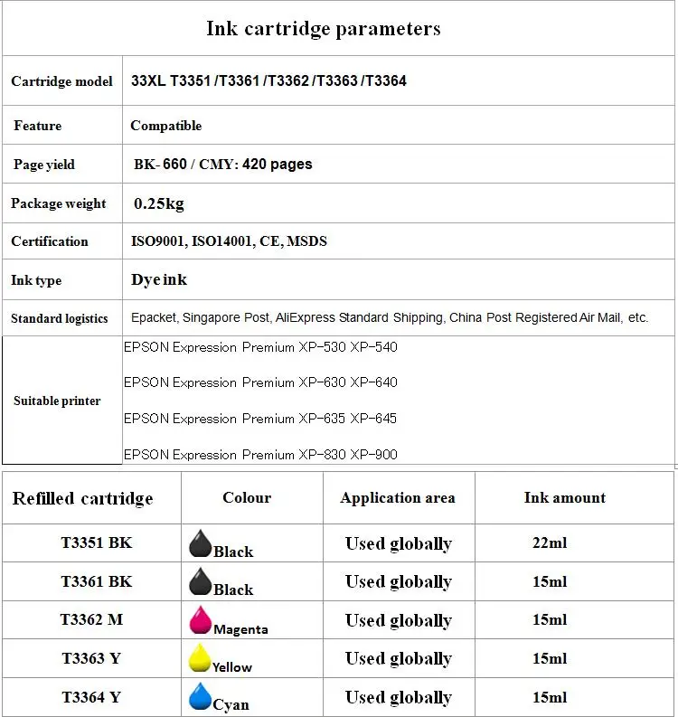 Expression Premium XP-830 XP-90033XL 3357XL ink cartridge