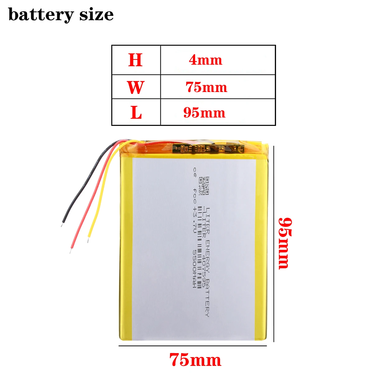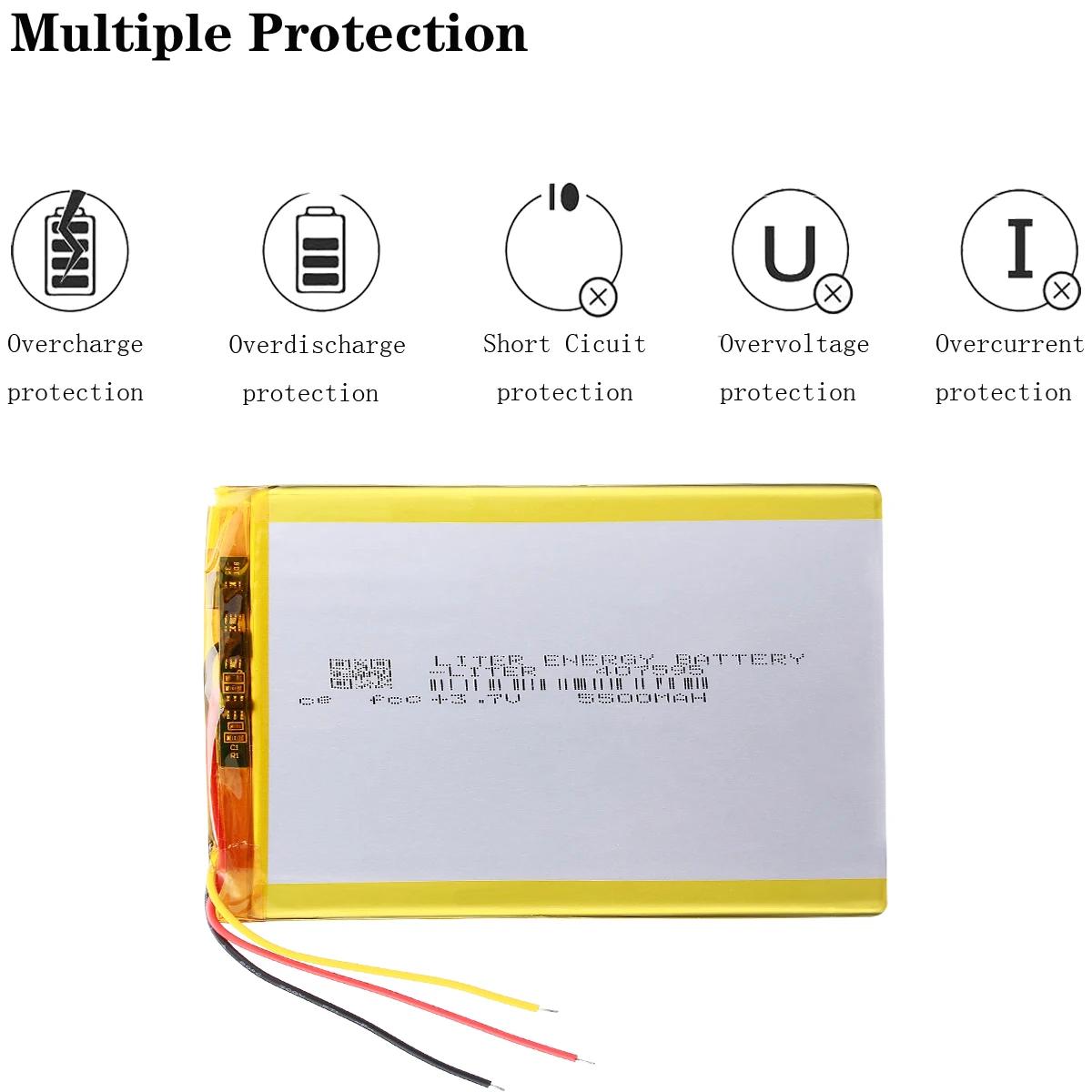 Литий-полимерный аккумулятор 407595, 3 линии, 7,8, 9-дюймовый планшетный ПК, литий-ионный аккумулятор 407595, 3,7 в, 5500 мА ч