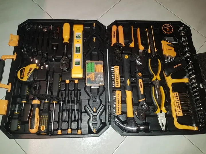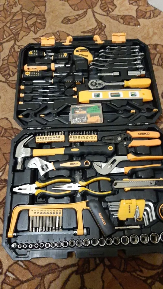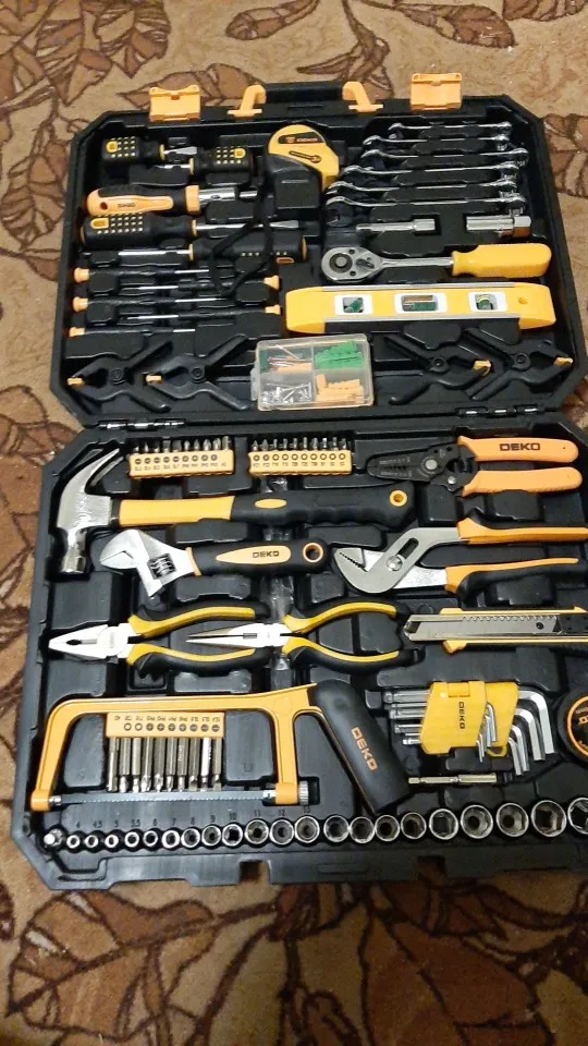 Набор ручных инструментов DEKOPRO 168 шт., набор ручных инструментов общего назначения с пластиковым ящиком для инструментов, чехол для хранения торцевых ключей, отвертка, нож