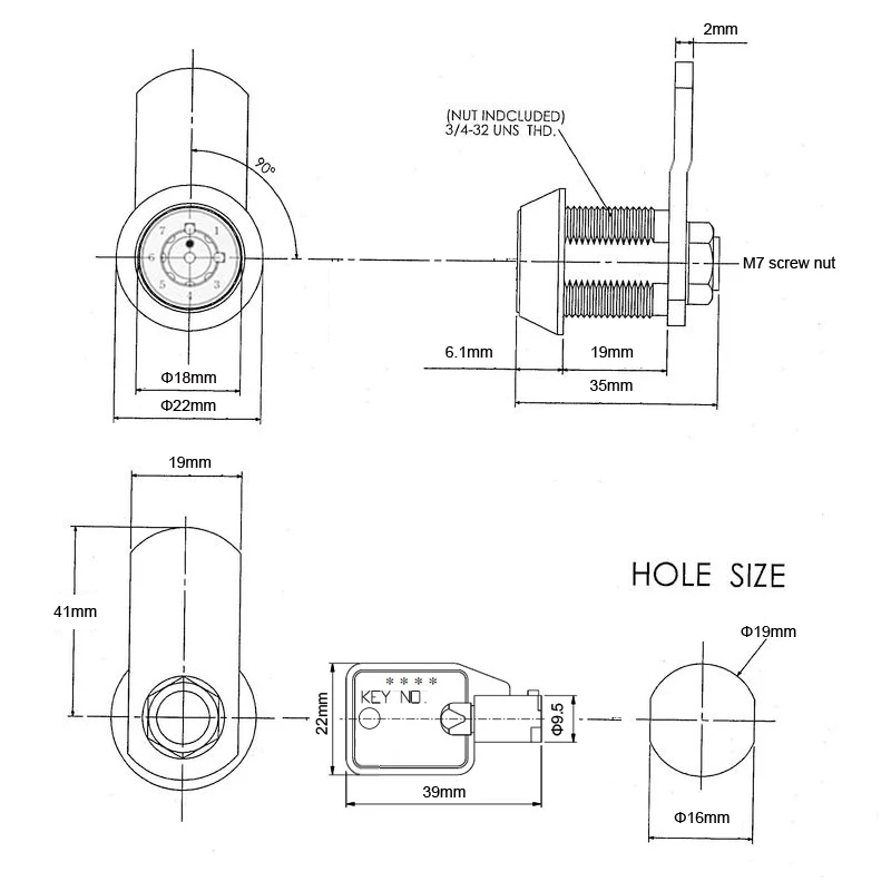 1 шт 19 мм трубчатый Cam Lock(2 ключа на замок, кулачок И Гайки корпуса)