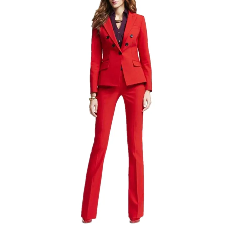 Красный женский деловой костюм из 2 предметов, блейзер и брюки, Женская Офисная форма, деловые брючные костюмы для свадьбы, смокинг на заказ