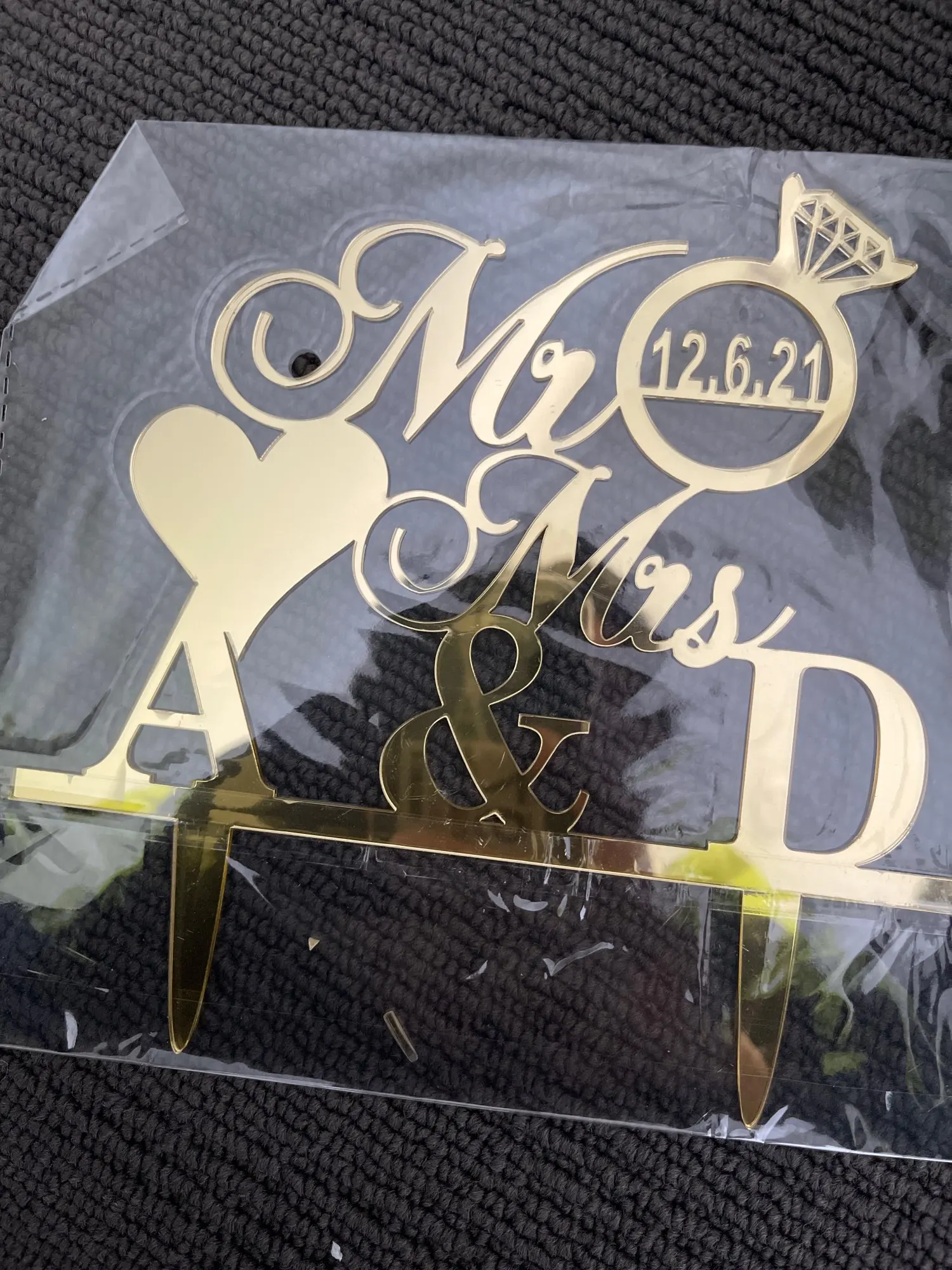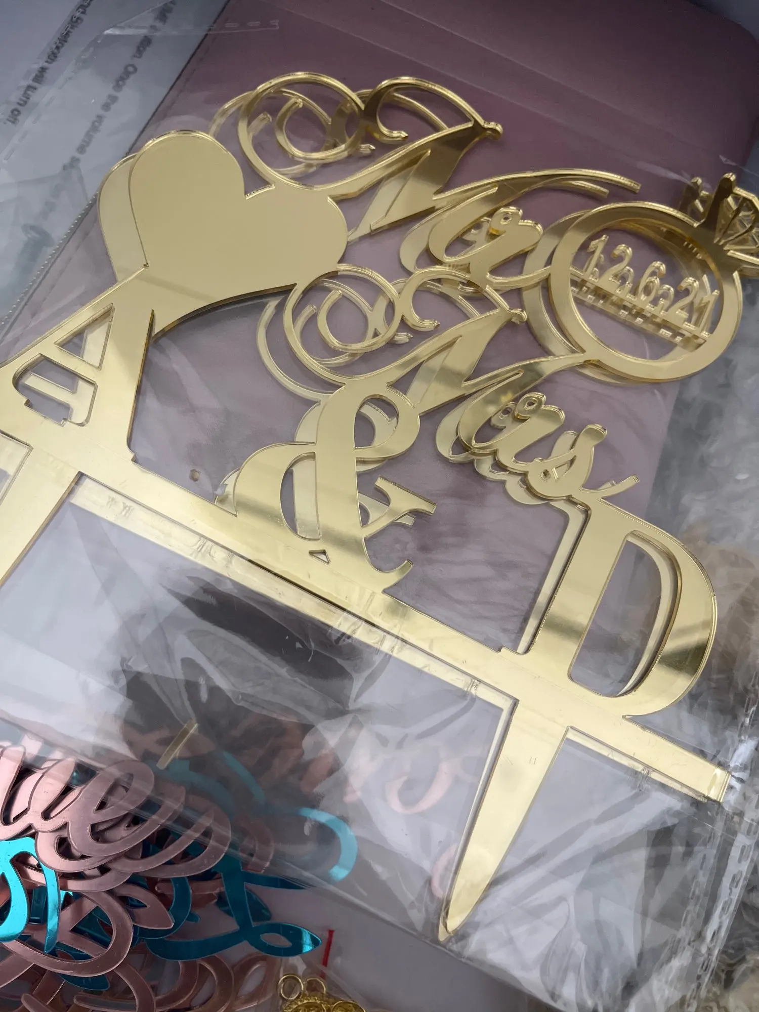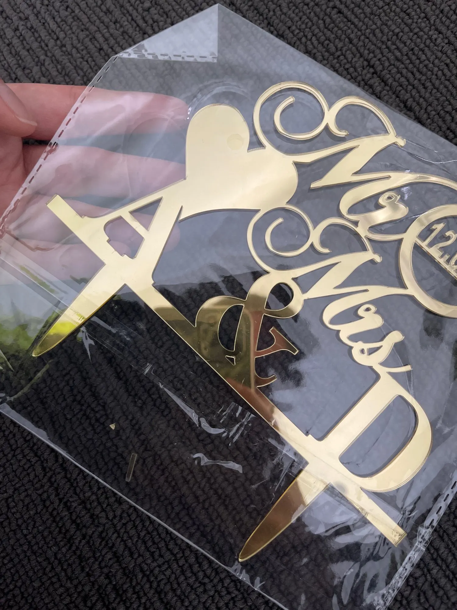Сердце любовь Свадебный торт Топпер, изготовленный на заказ Mr и Mrs акриловый Золотой Серебряный деревянный черный торт Топпер, уникальный персонализированный торт Топпер.
