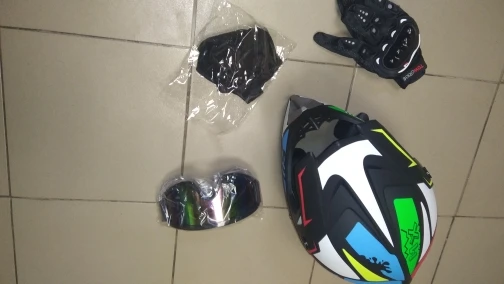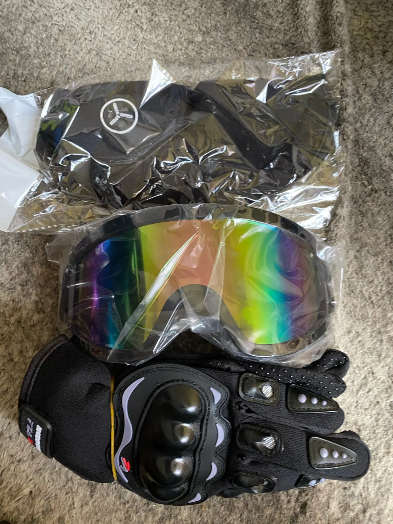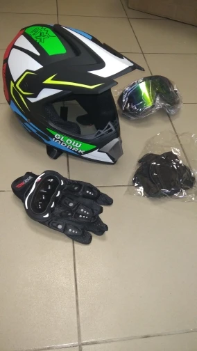 capacete é mt ruim material fraco dmais eu n compraria dnovo, mt bonito poren ruim , o oculos e a luva sao bons
